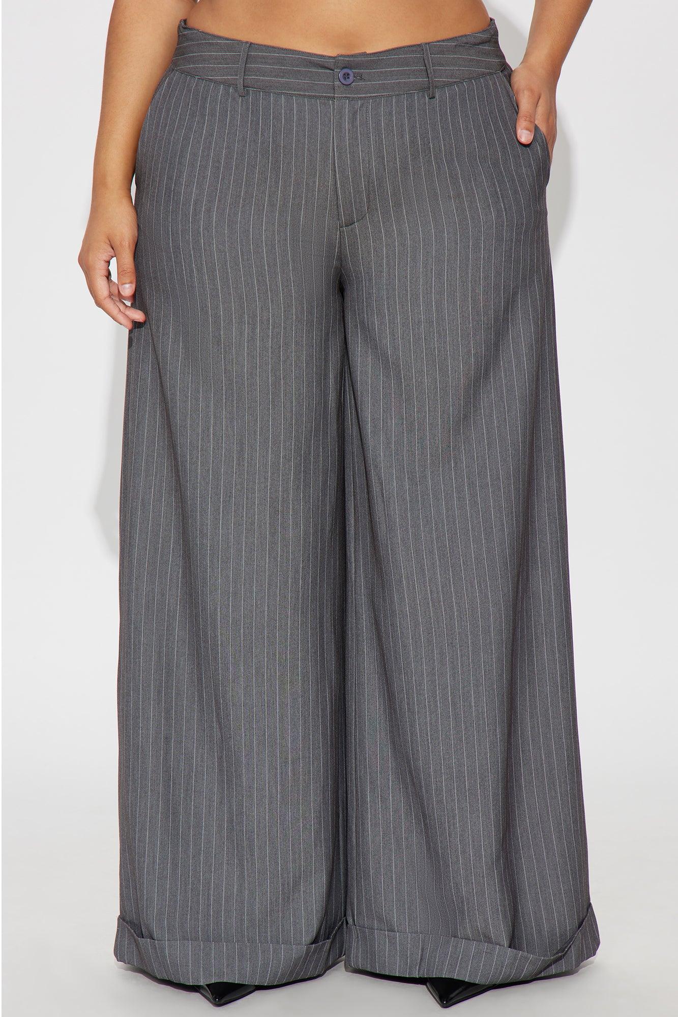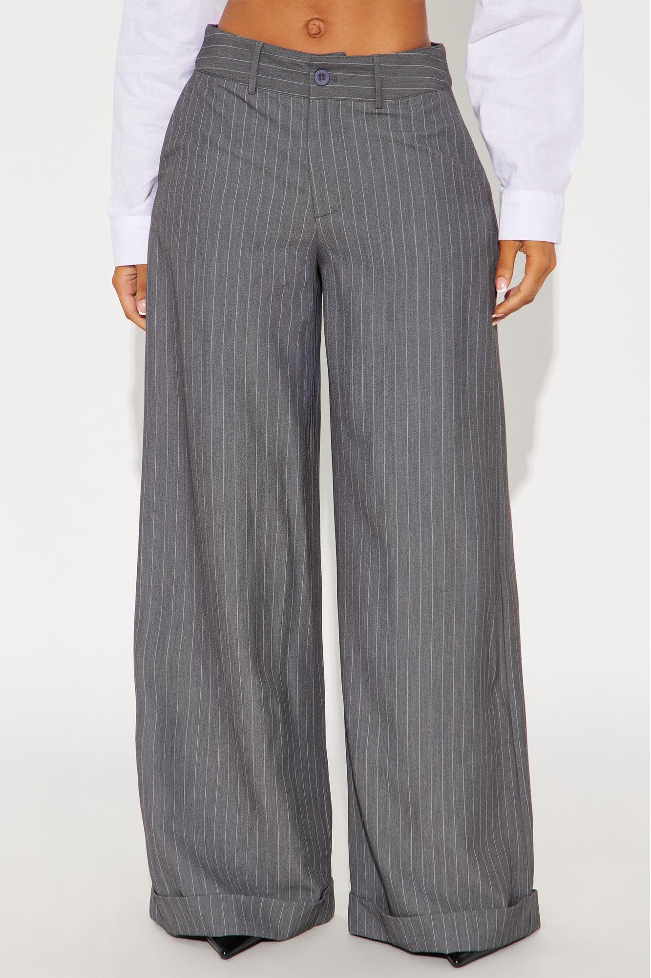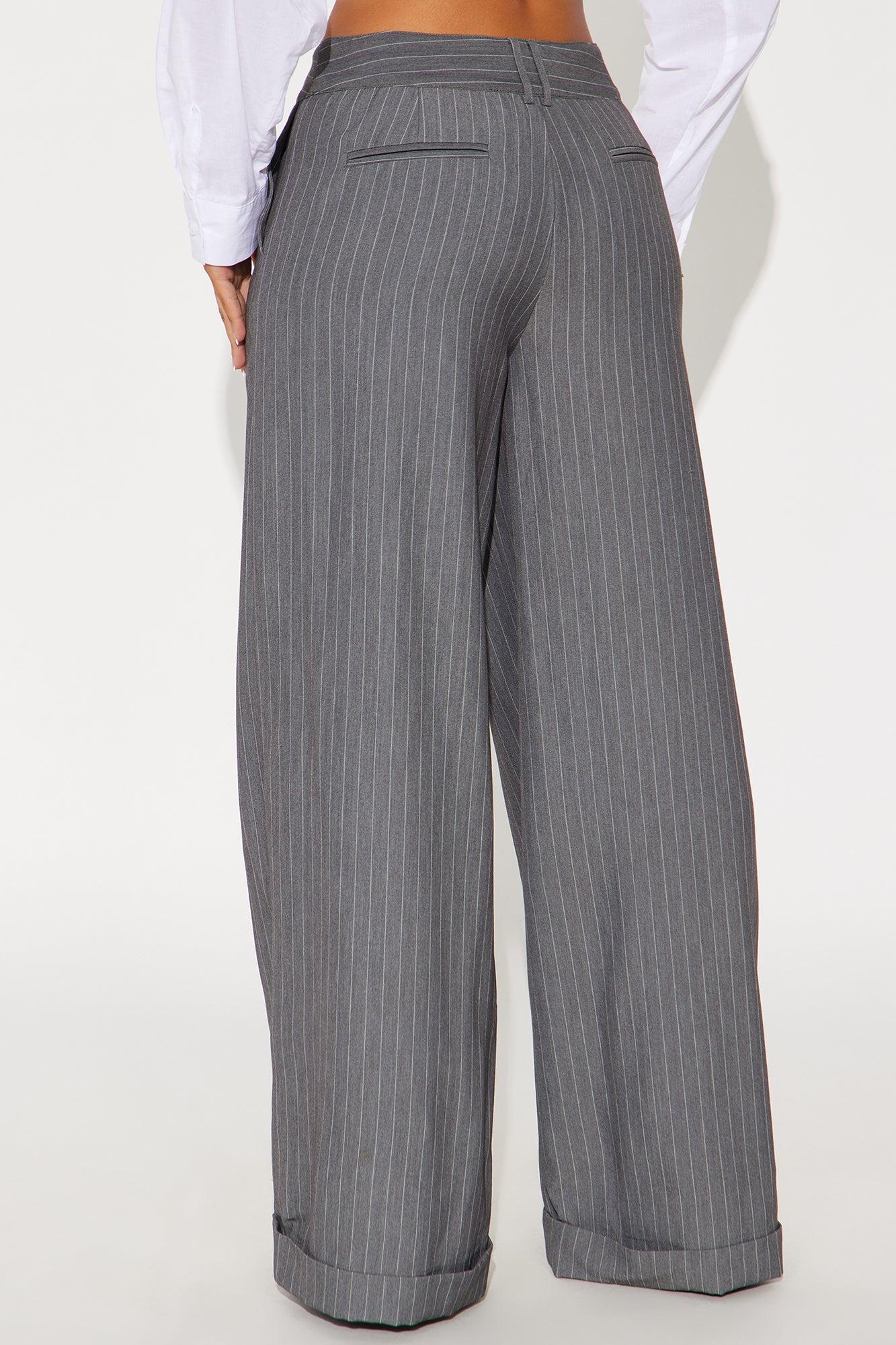 Bossed Up Cuffed Pinstripe Trouser Pant 32″ - Charcoal Female