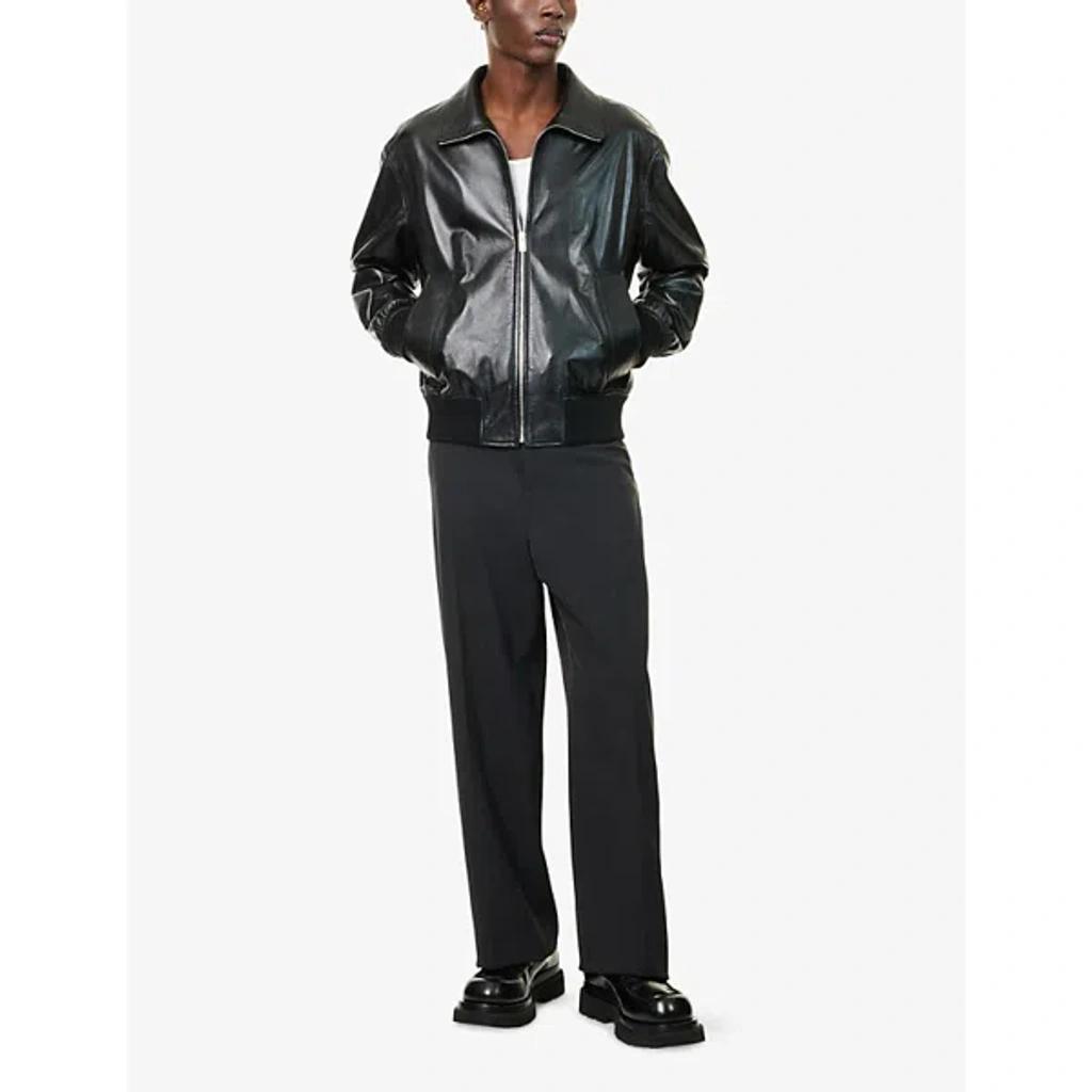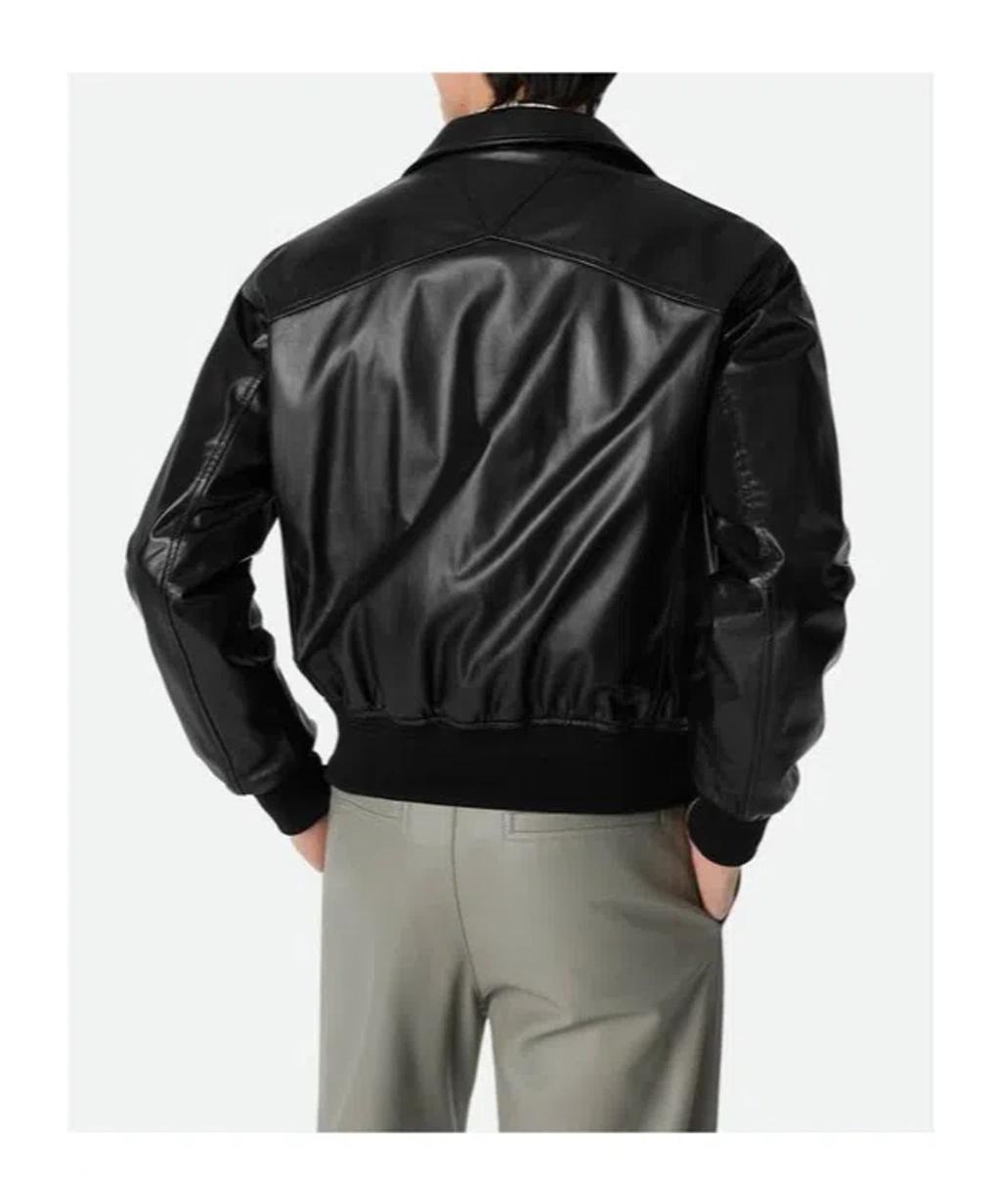Shop Bottega Veneta Nappa Leather Coat With Classic Collar In Black from 800+ stores, starting at $2919. Subtle 'V' details bring signature BV flair to this blouson jacket impeccably constructed in Italy from buttery soft lambskin leather. Front zip closure Spread collar Ribbed cuffs Front welt pockets LIned Leather with 89% wool, 9% polyamide, 2% elastane trim Professional leather clean Made in Italy Designer Clothing
