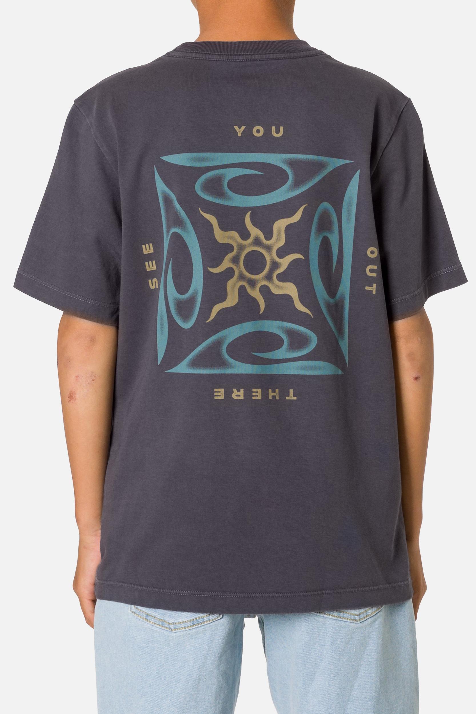 The Arcane Tee features modern earth-art–inspired graphics on organic cotton with a clean, understated finish. 100% Certified Organic Cotton Custom dyed washed Katin flag label