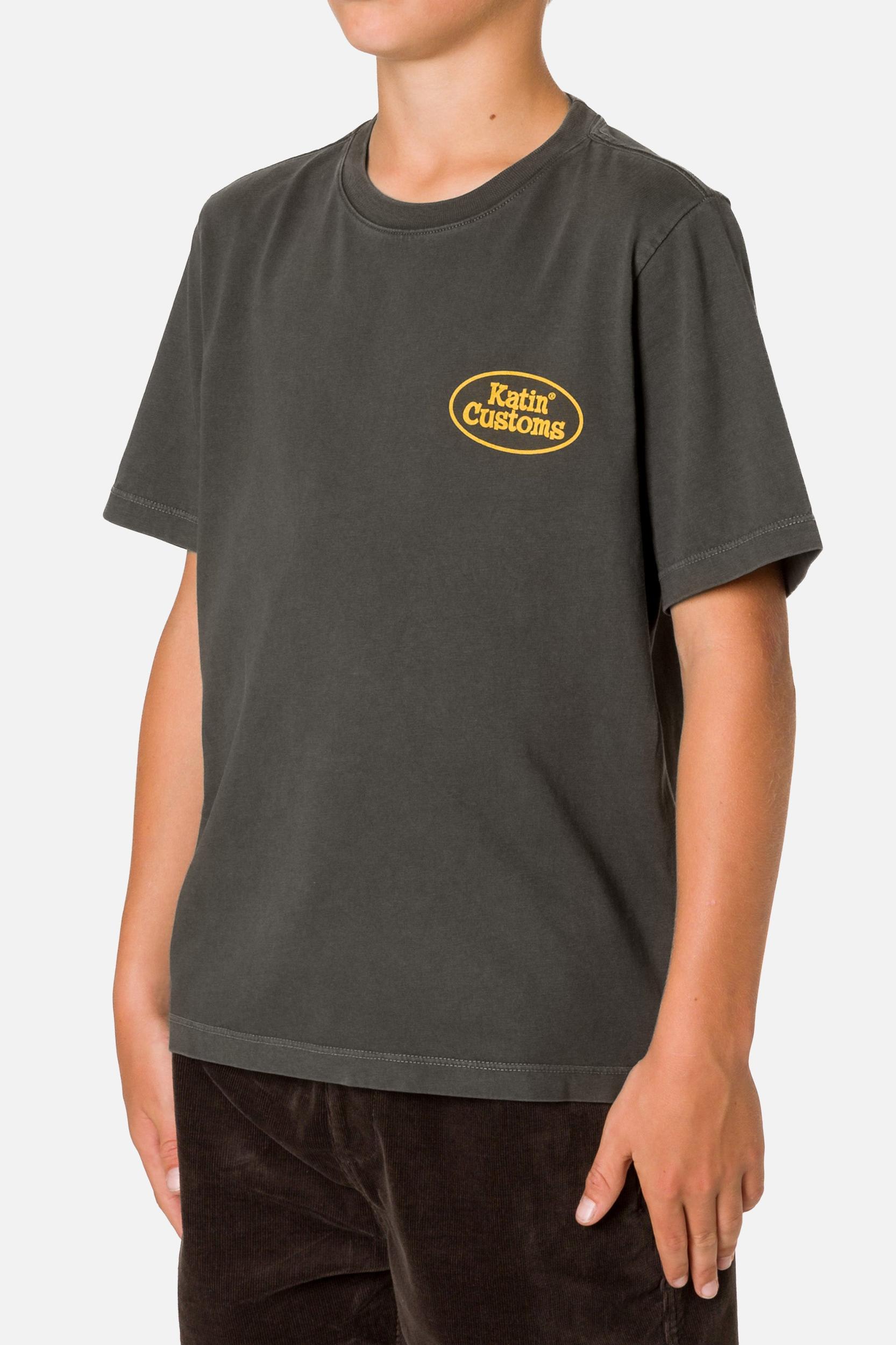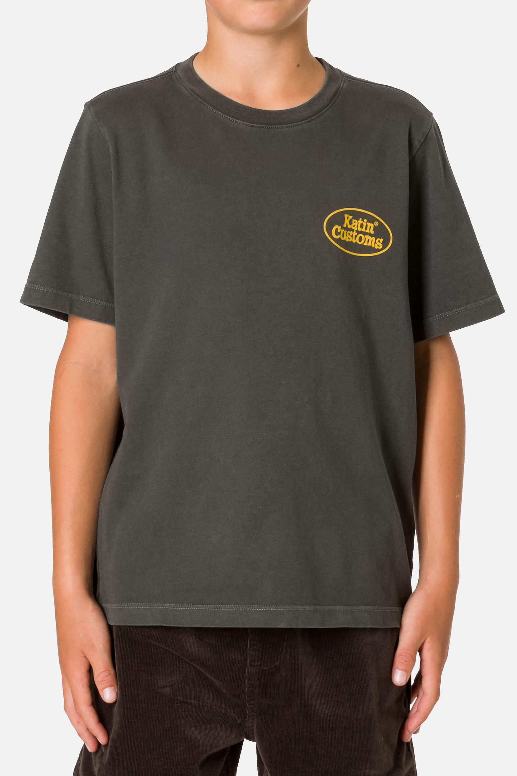 The Haulin Tee carries a single-color 70s surf illustration, printed on breathable organic cotton for easy everyday wear. 100% Certified Organic Cotton Custom dyed washed Katin flag label