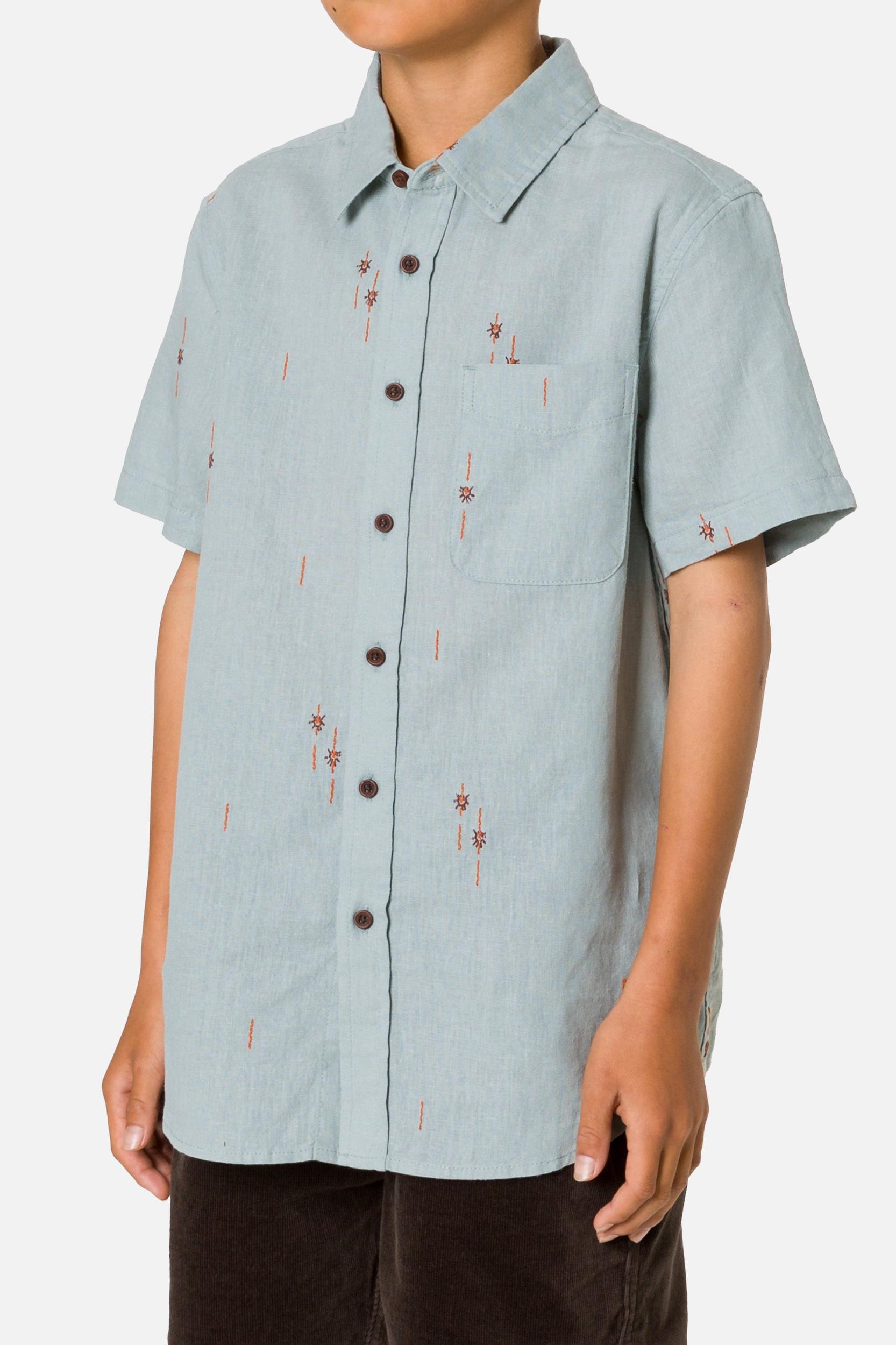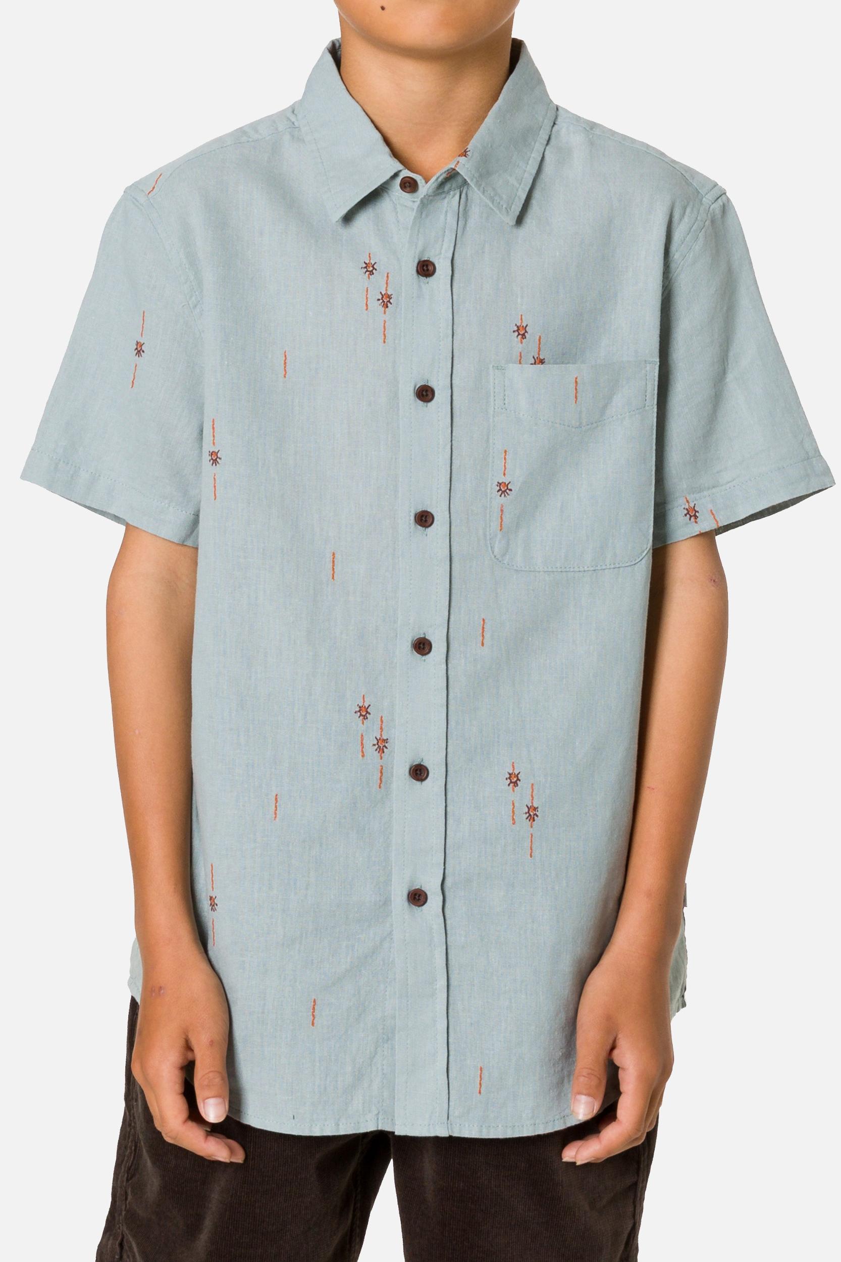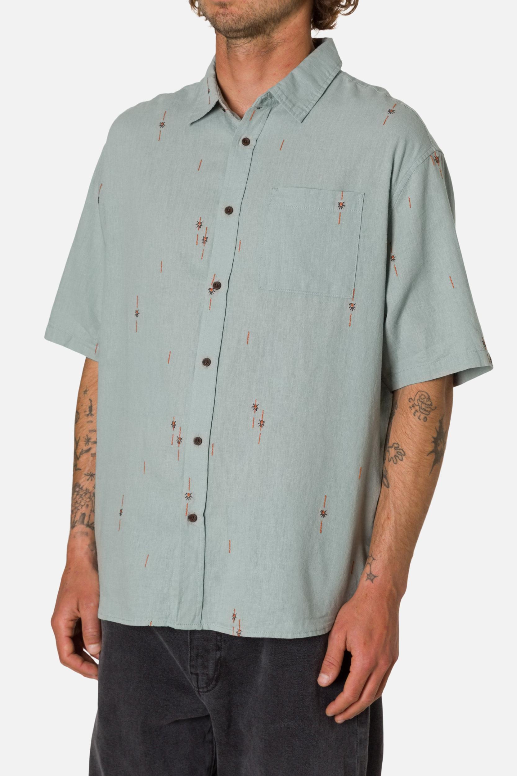 The Sparks Shirt uses a linen-cotton clipped dobby for light texture and airflow. A garment wash softens the fabric, giving it a broken-in feel right away.
