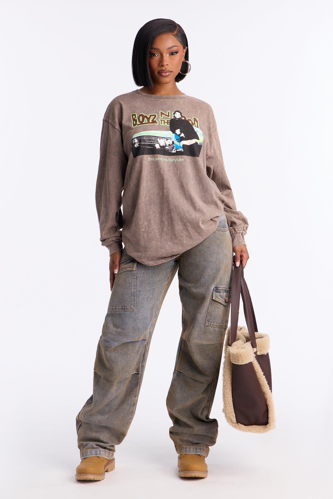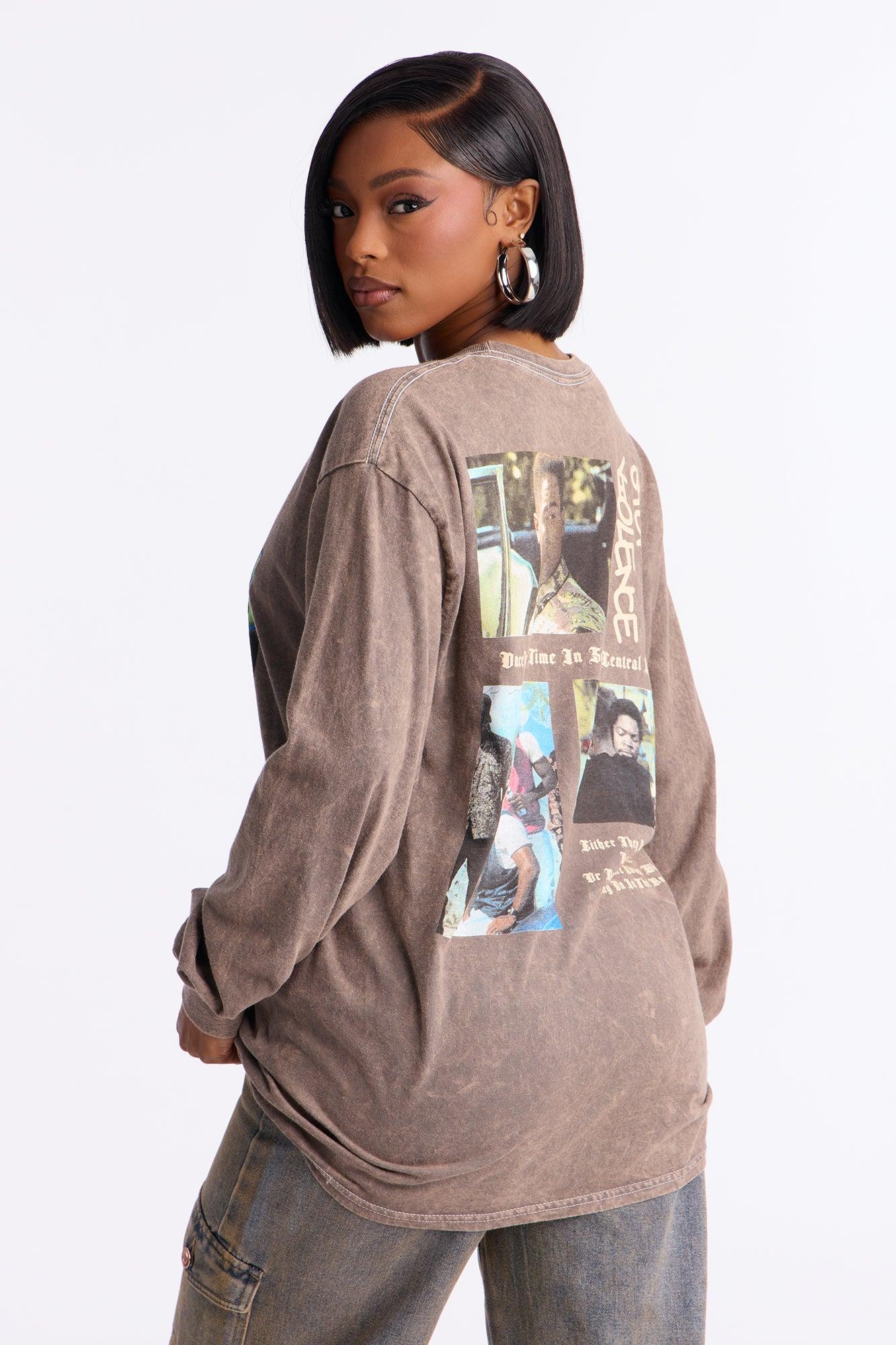 Boyz N The Hood Washed Multi Hit Long Sleeve Tee - Brown Female