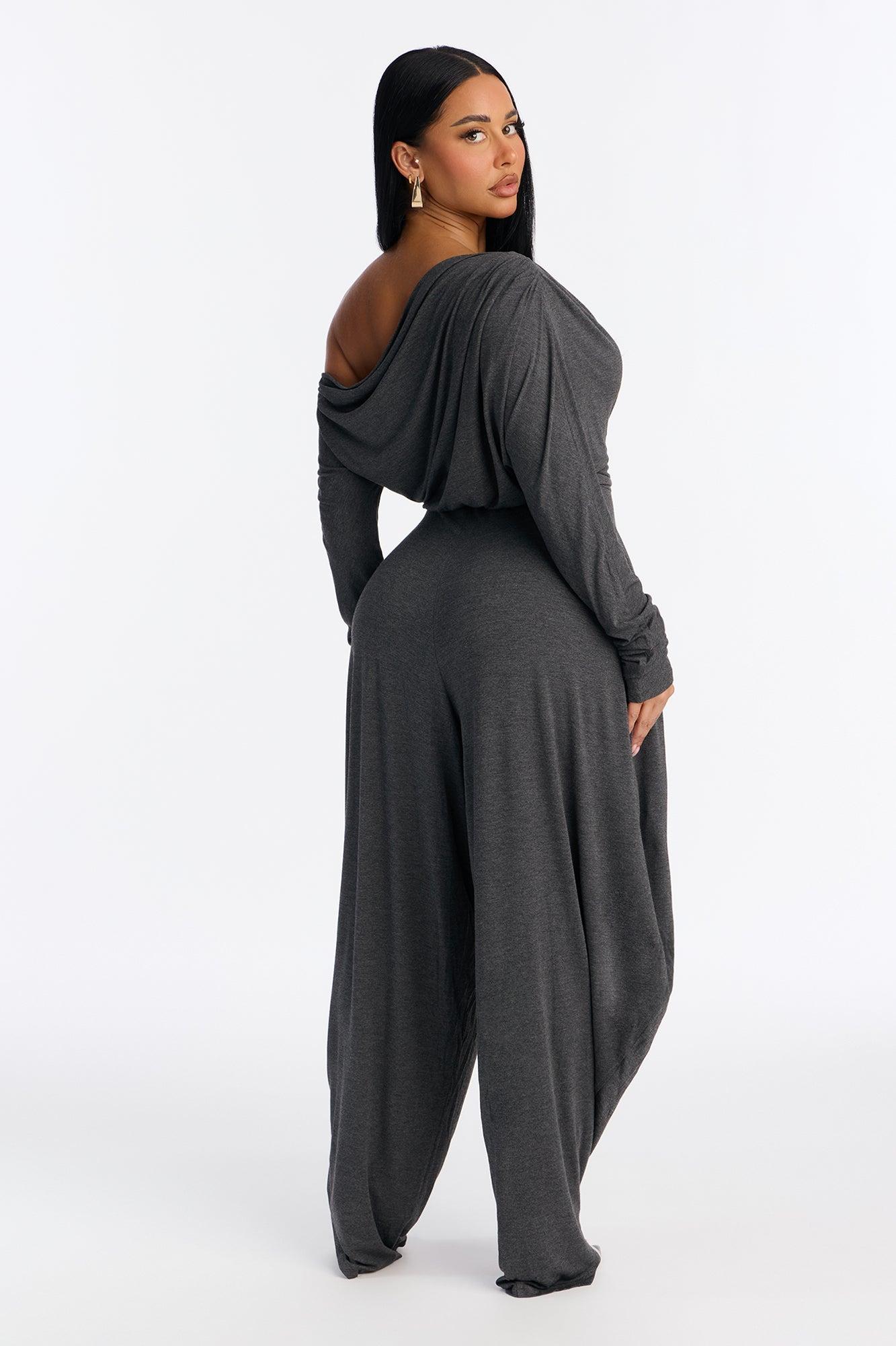 Bria Barrel Wide Leg Jumpsuit - Charcoal Female