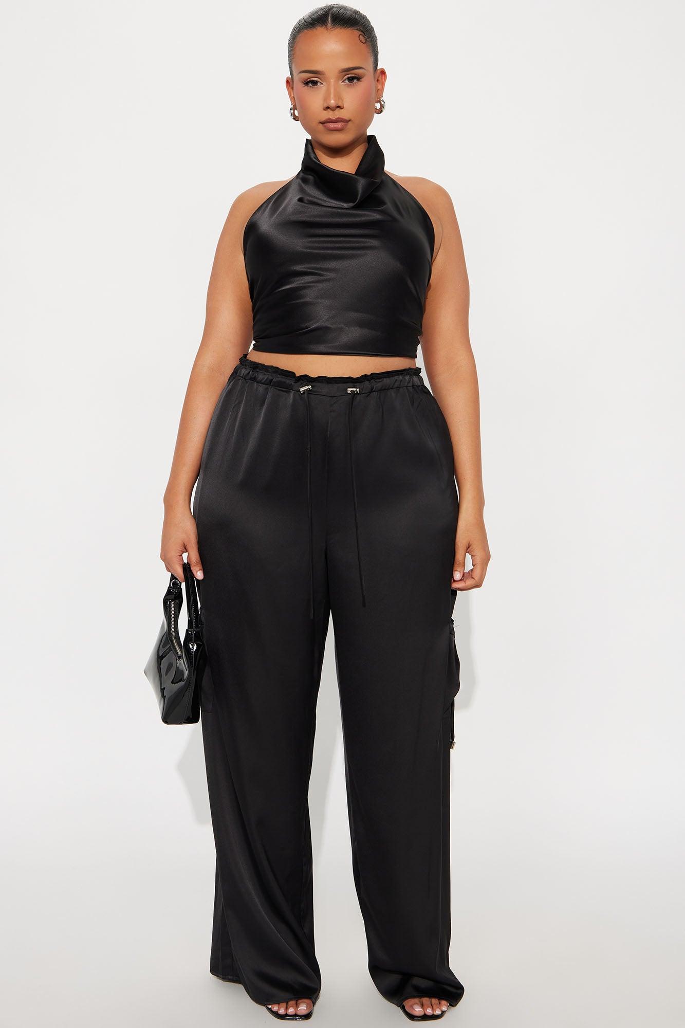 Brielle Satin Wide Leg Cargo Pant 33″ - Black Female