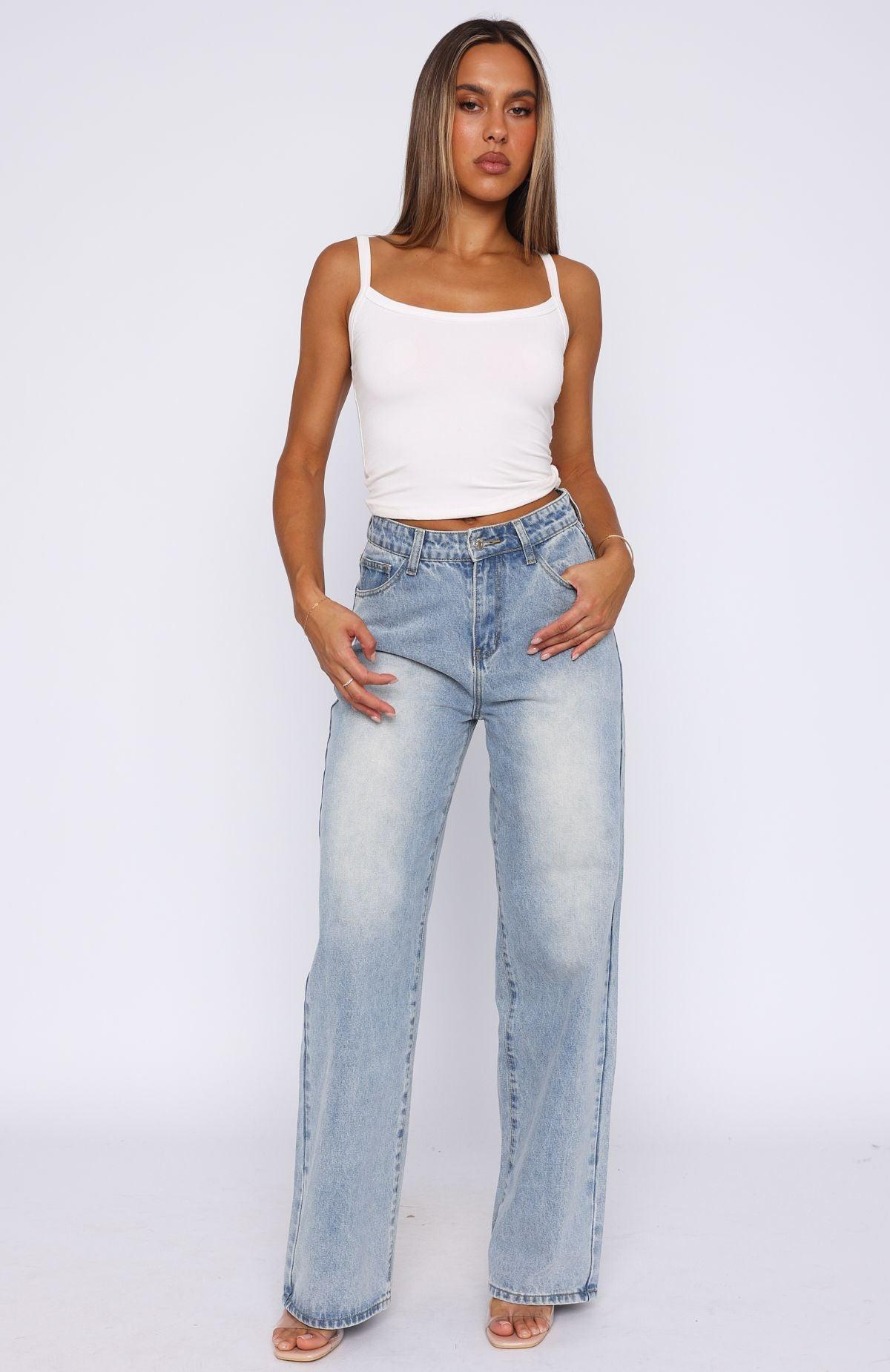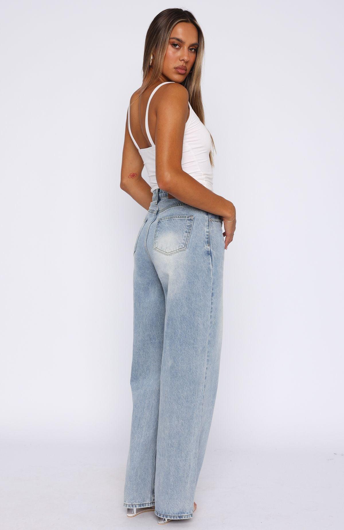 WHITE FOX DENIM Your most loved just got an upgrade! The Bring The Style High Rise Wide Leg Jeans Light Blue features a high waisted design, front zip and button closure, belt loops, wide leg design and 5 pocket design. We love this paired with a cute crop and sneakers for the ultimate IT girl fit! 81% Cotton 16% Polyester 3% Viscose Mik is 171cm & wears a S