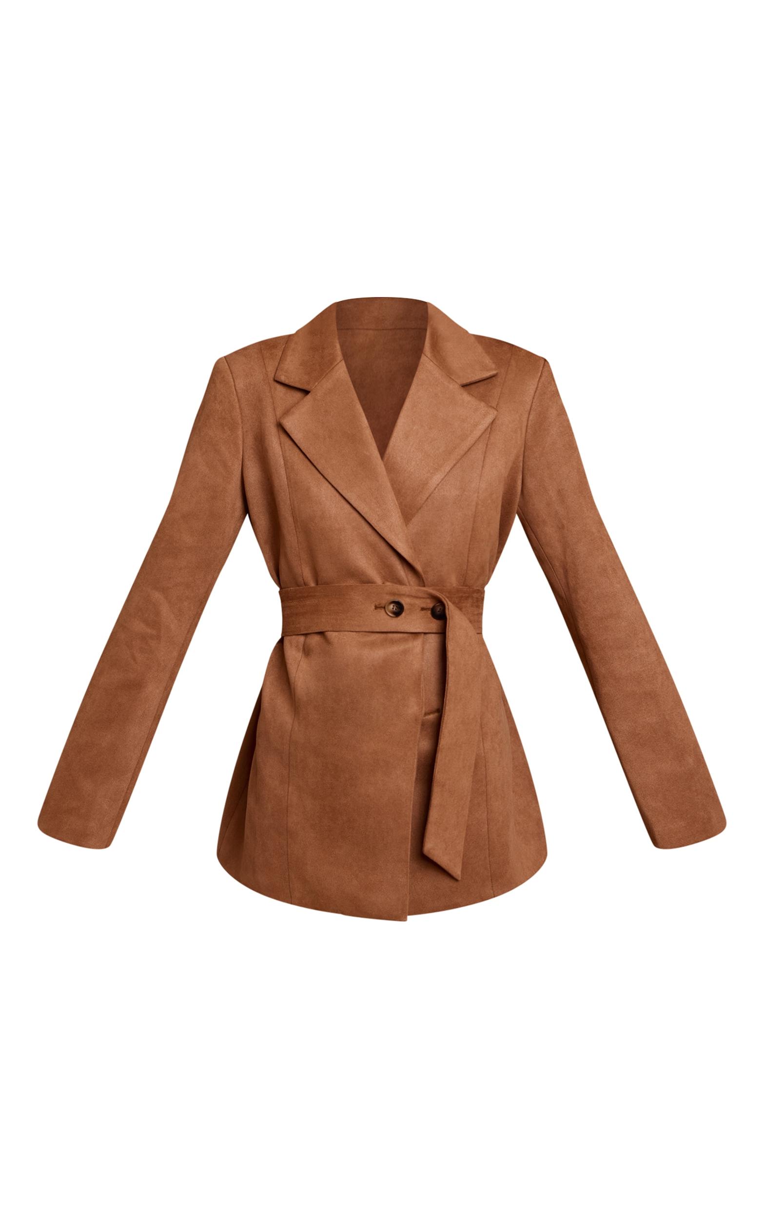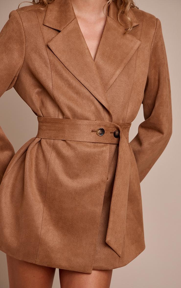 Finish your look strong with this brown faux suede belt detail blazer dress. Designed in a brown faux suede material with a belt detail and structured blazer fit, it creates a flattering silhouette. Style with heels and a clutch for confident evening styling.Length approx 81.5cm/32inch (Based on sample size US 4)Model wears size UK 8/ EU 36/ AUS 8/ US 4Model Height - 5ft 10inchp]:!mb-4inch>Brand: PrettyLittleThingCategory: DressesProduct type: Blazer DressColor: BrownMaterial: Faux SuedeOccasion: Day
