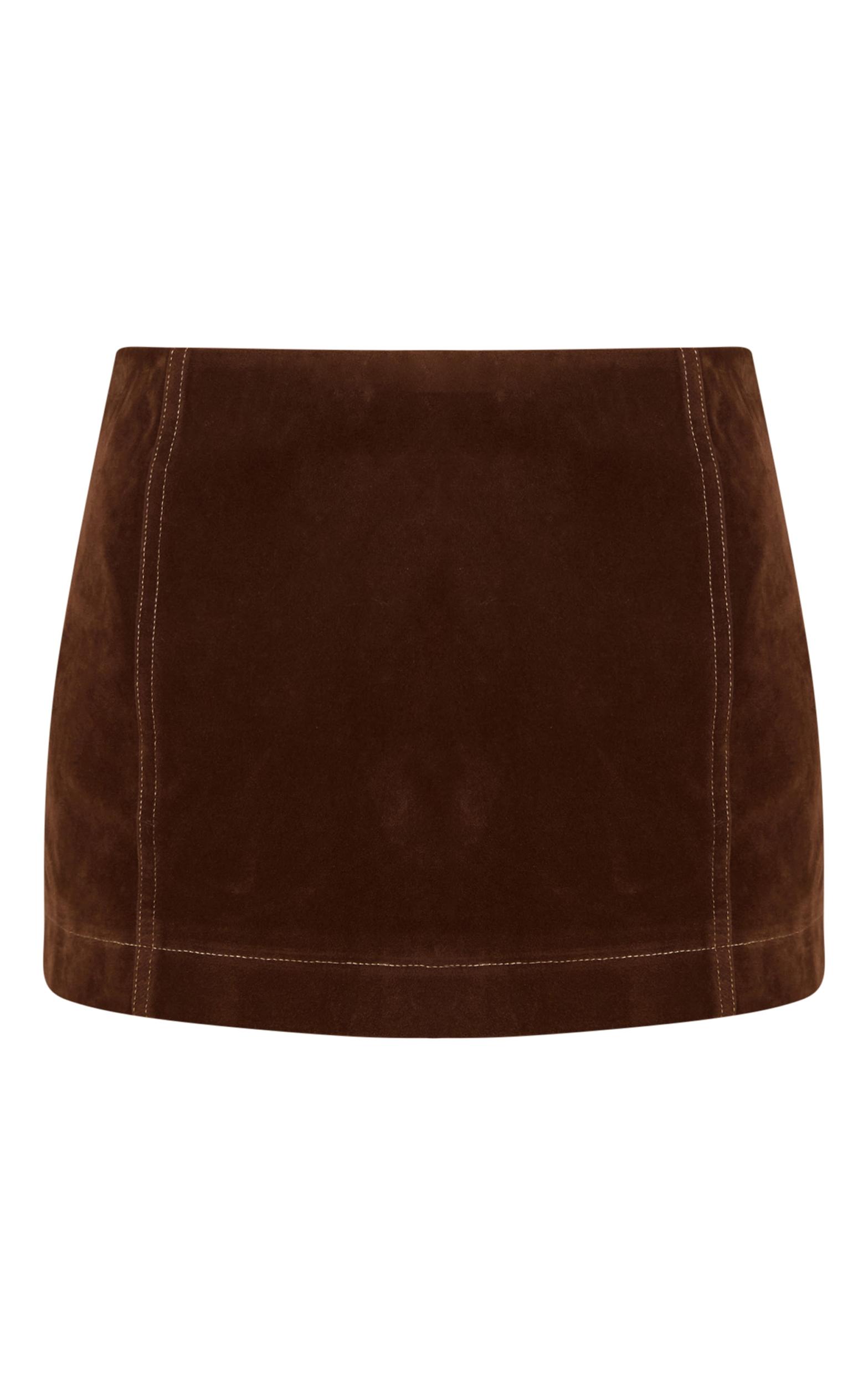 Bring texture to your wardrobe with the brown faux suede stitching detail mini skirt. The subtle stitching adds dimension while the mini length keeps it playful. Style with a fitted knit and ankle boots for casual days, or pair with a satin blouse and heels for a chic evening look.Length approx 33cm/13inch (Based on sample size US 4)Model wears size UK 8/ EU 36/ AUS 8/ US 4Model Height - 5ft 9inchp]:!mb-4inch>Brand: PrettyLittleThingCategory: BottomsProduct type: Mini SkirtColor: BrownMaterial: Faux SuedeOccasion: Day