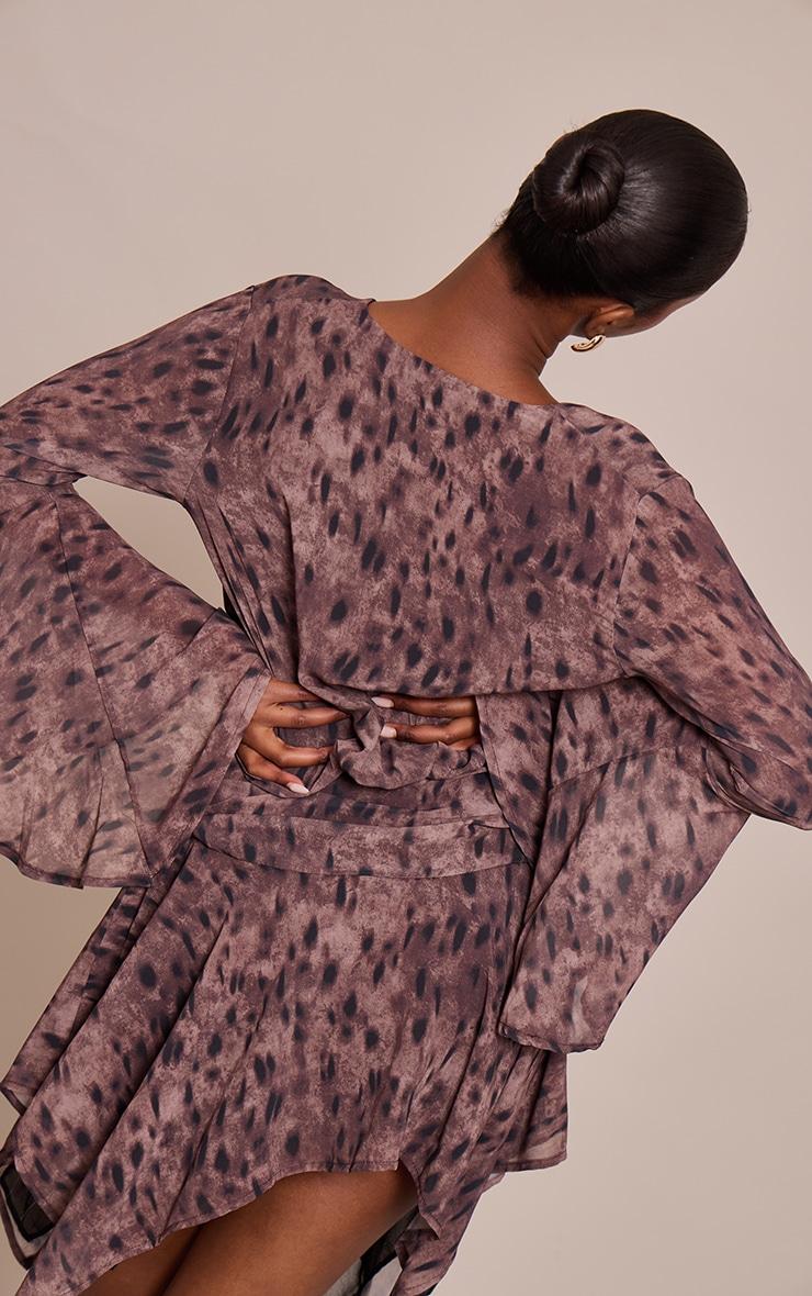 Turn heads this season with the Brown Leopard Print Frill Tiered Skort Romper. Crafted in a fierce leopard print, this statement one-piece features a flattering skort design with tiered frill detailing for extra movement and drama. The romper silhouette keeps things chic and effortless, while the bold print brings maximum impact. Style it with lace-up heels, gold hoop earrings, and a sleek clutch for a night out, or dress it down with sandals and a denim jacket for a daytime edge.Length approx 81.5cm/32inch (Based on sample size US 4)Model wears size UK 8/ EU 36/ AUS 8/ US 4Model Height - 5ft 9inchp]:!mb-4inch>Brand: PrettyLittleThingCategory: DressesProduct type: Floaty PlaysuitColor: BrownMaterial: ChiffonOccasion: Evening