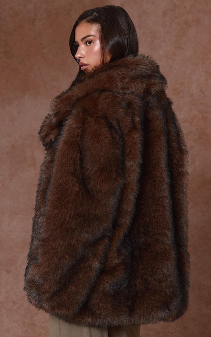 Turn heads in outerwear with this brown oversized midi faux fur coat. Crafted from a luxe brown faux fur material in an oversized midi length, it offers a luxe warm fit. Layer over simple outfits or statement accessories for an instantly elevated finish.Length approx 105.5cm/41.5inch (Based on sample size S)Model wears size SModel Height - 5ft 10inchp]:!mb-4inch>Category: OuterwearProduct type: Faux FurColor: BrownMaterial: Faux FurOccasion: Day