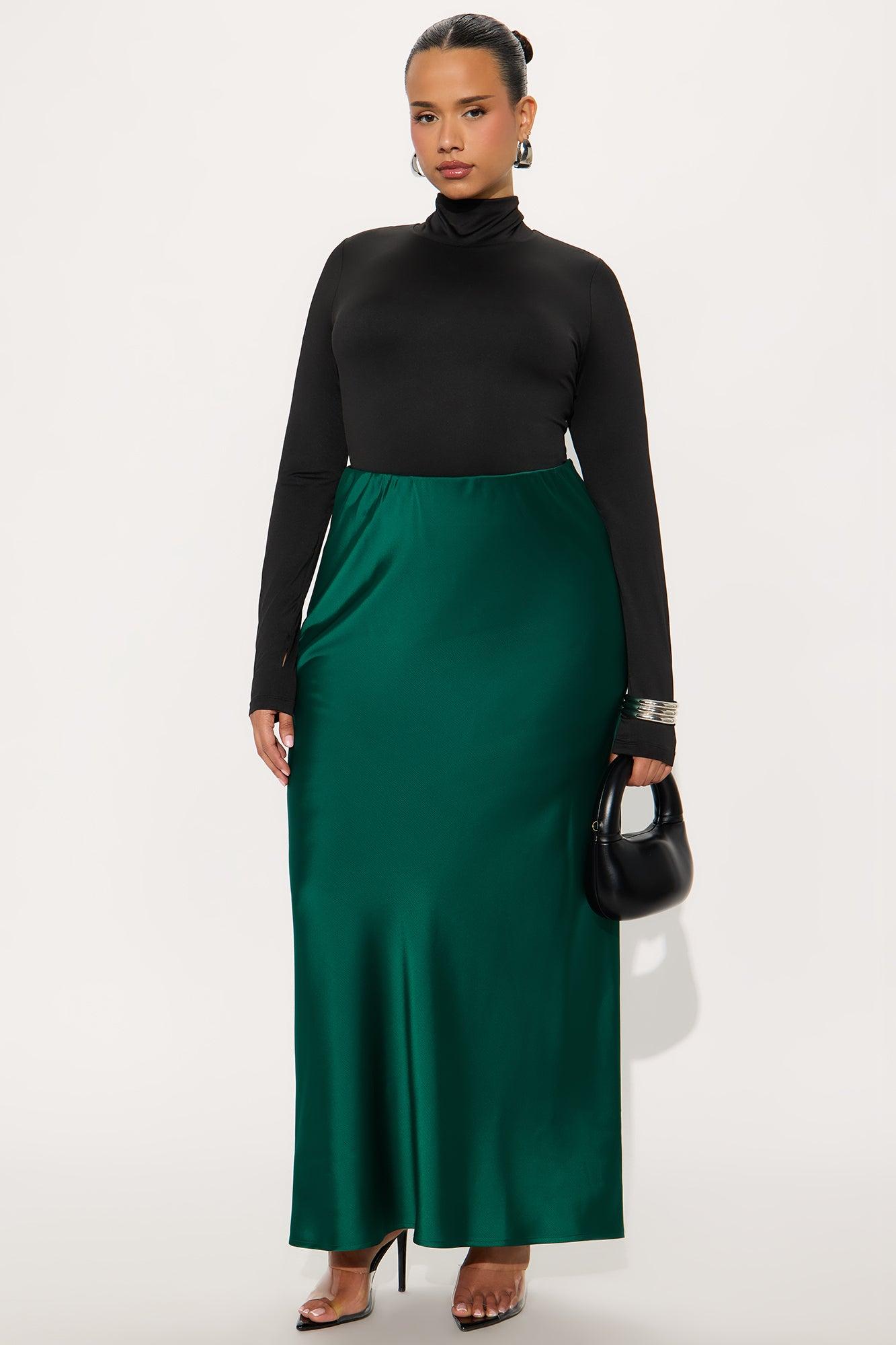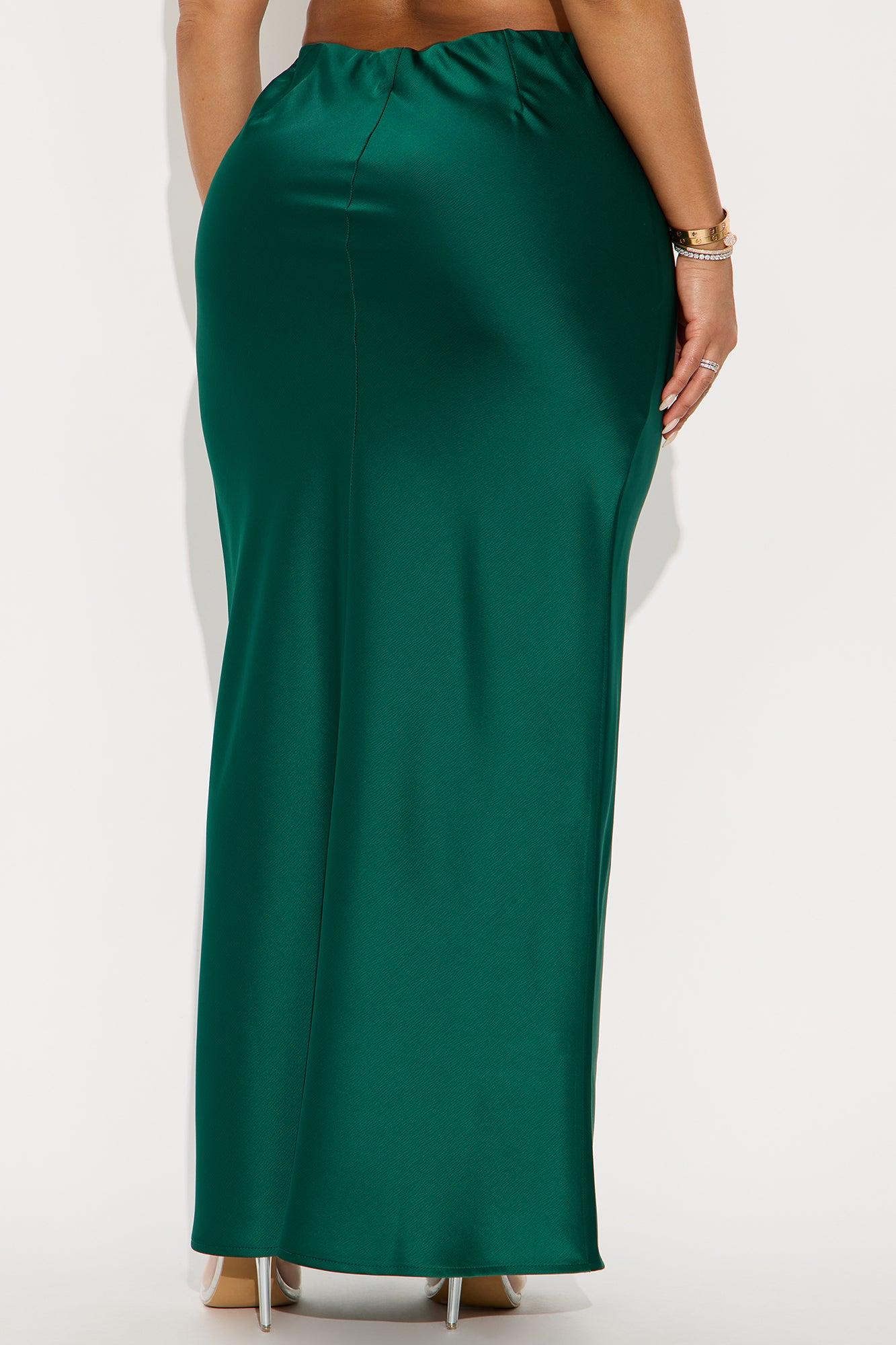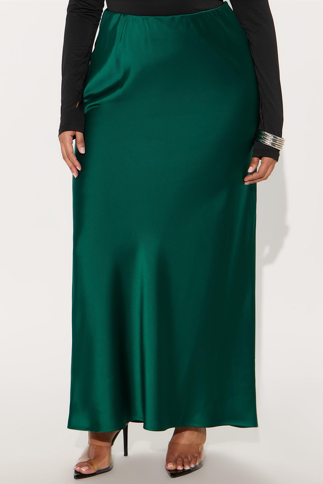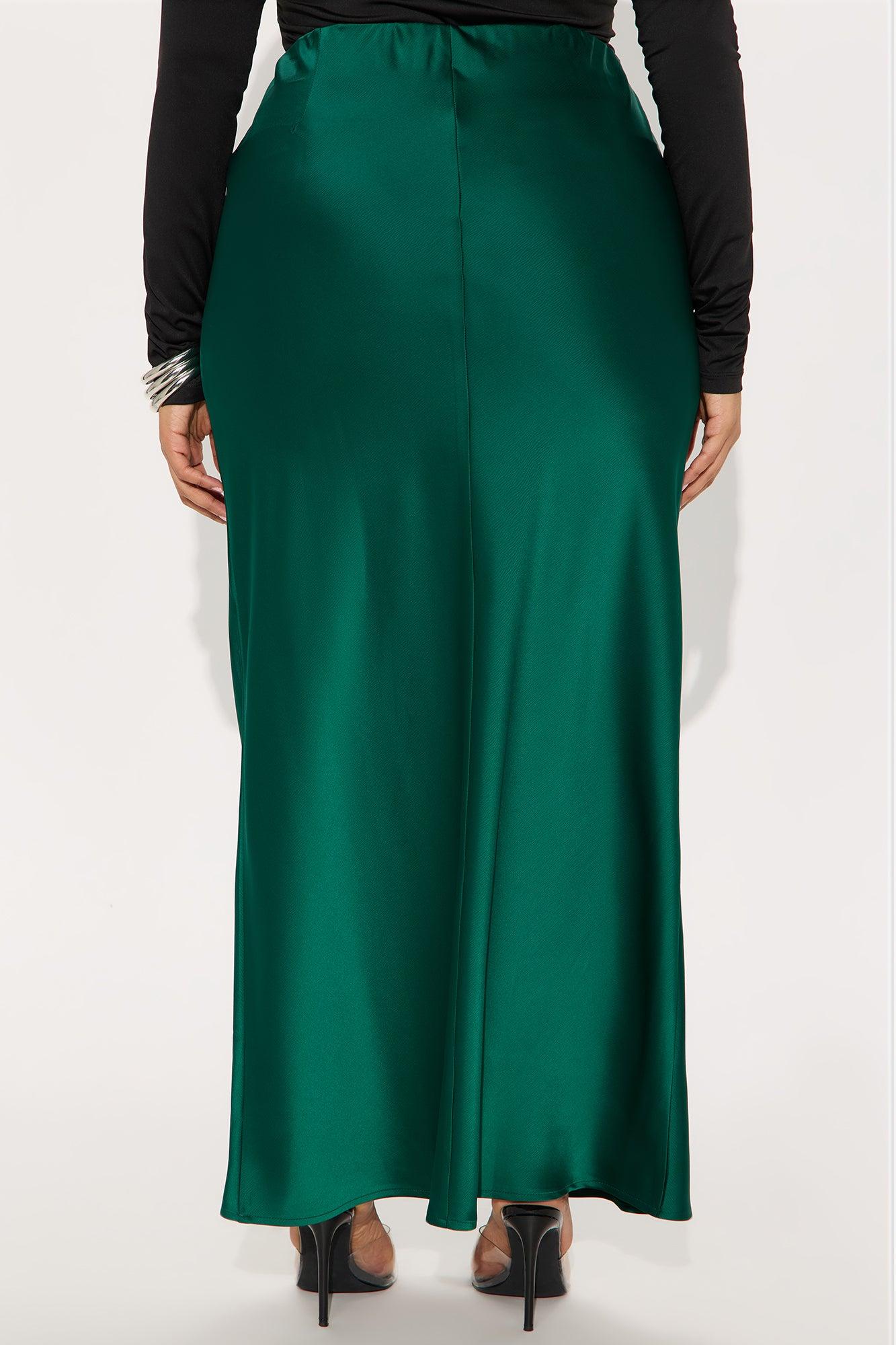 Brunch to GNO Satin Maxi Skirt - Emerald Female