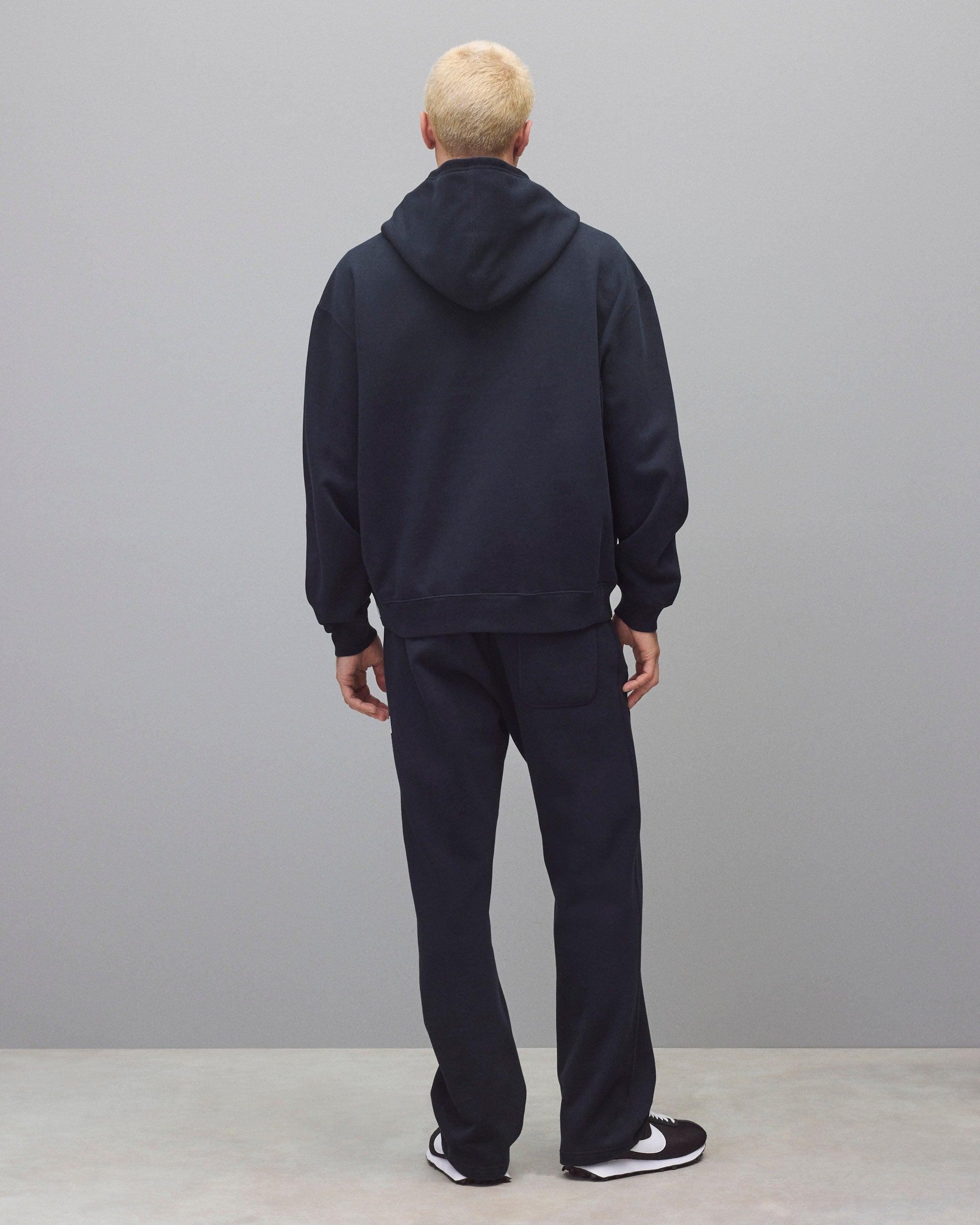 This seasonal sweatpant is crafted from a loftier, fleeceback fabric chosen for its soft interior feel and insulating properties. Designed in a straight leg standard fit, with a drawcord waistband, welt pockets, a rear patch pocket, and plain hem.