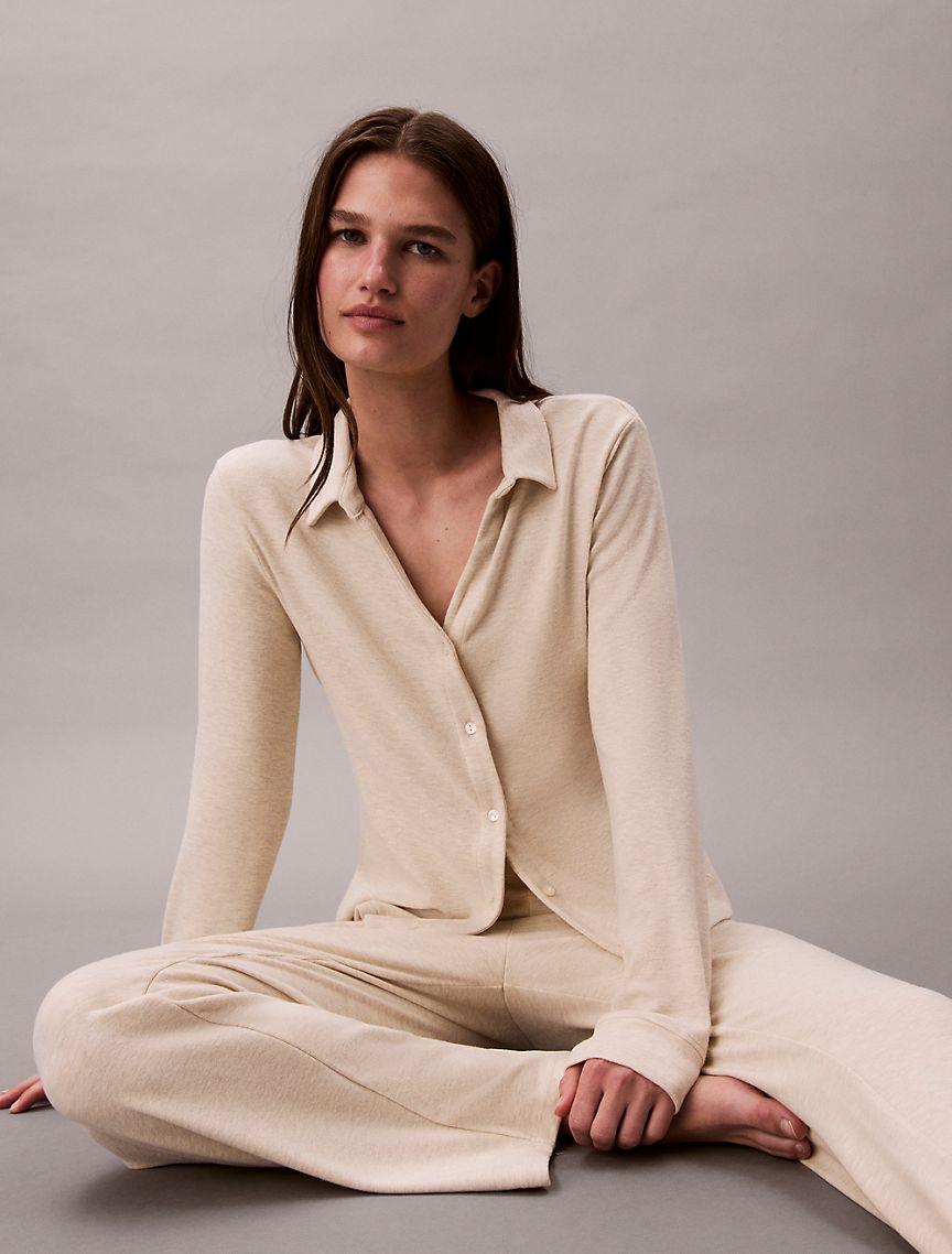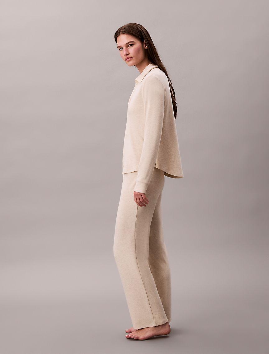 Soft and sumptuous, this pull-on pant is crafted from cozy brushed interlock fabric for premium comfort. Designed with an embroidered Calvin Klein logo at the waistband and slight stretch for added flexibility.