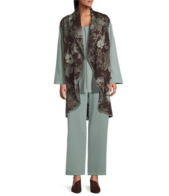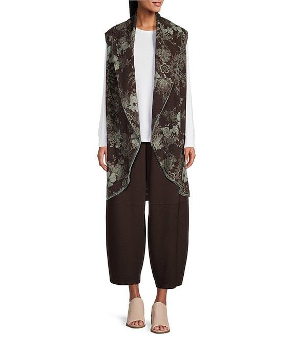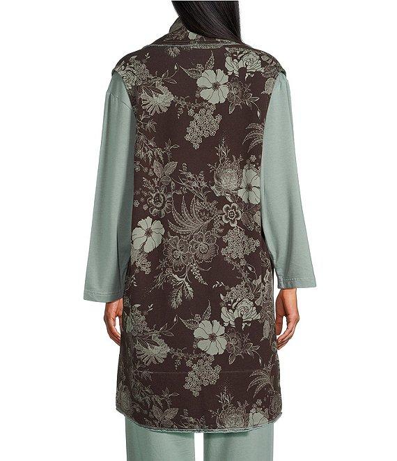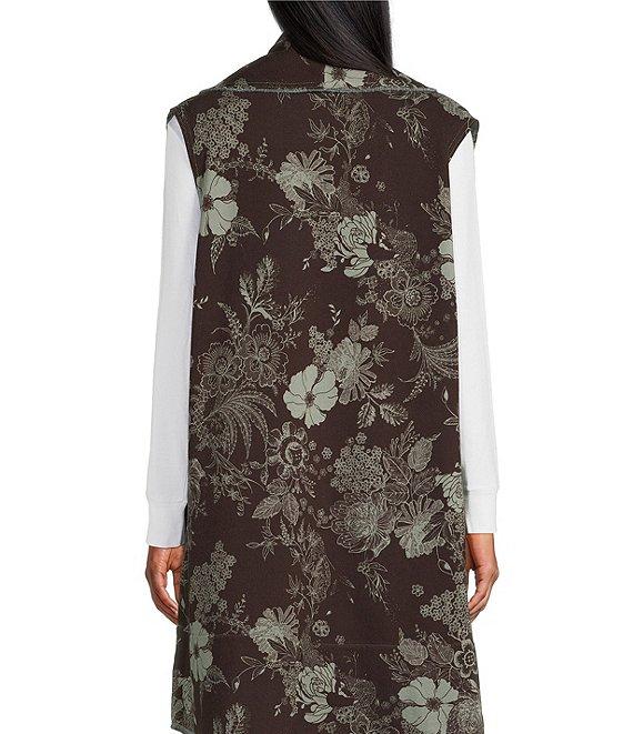 Bryn Walker Floral Print Bamboo Fleece Shawl Collar Sleeveless Wrap Vest