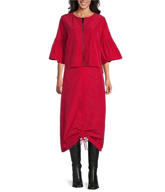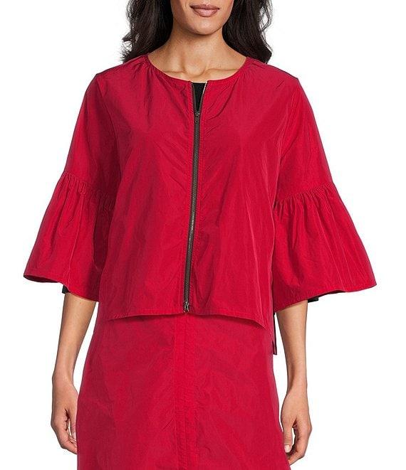 Bryn Walker Frida Memory Crunch Round Neck 3/4 Ruffle Bell Sleeve Jacket