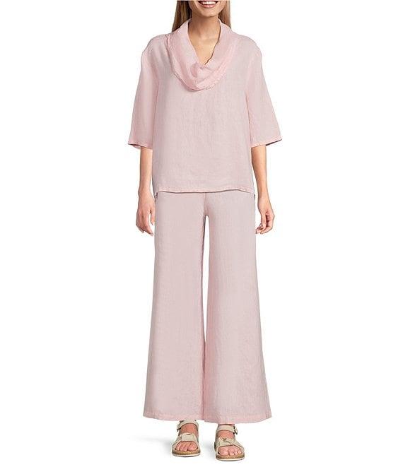 Bryn Walker Light Linen Flat Front Elastic Waist Wide Leg Pants