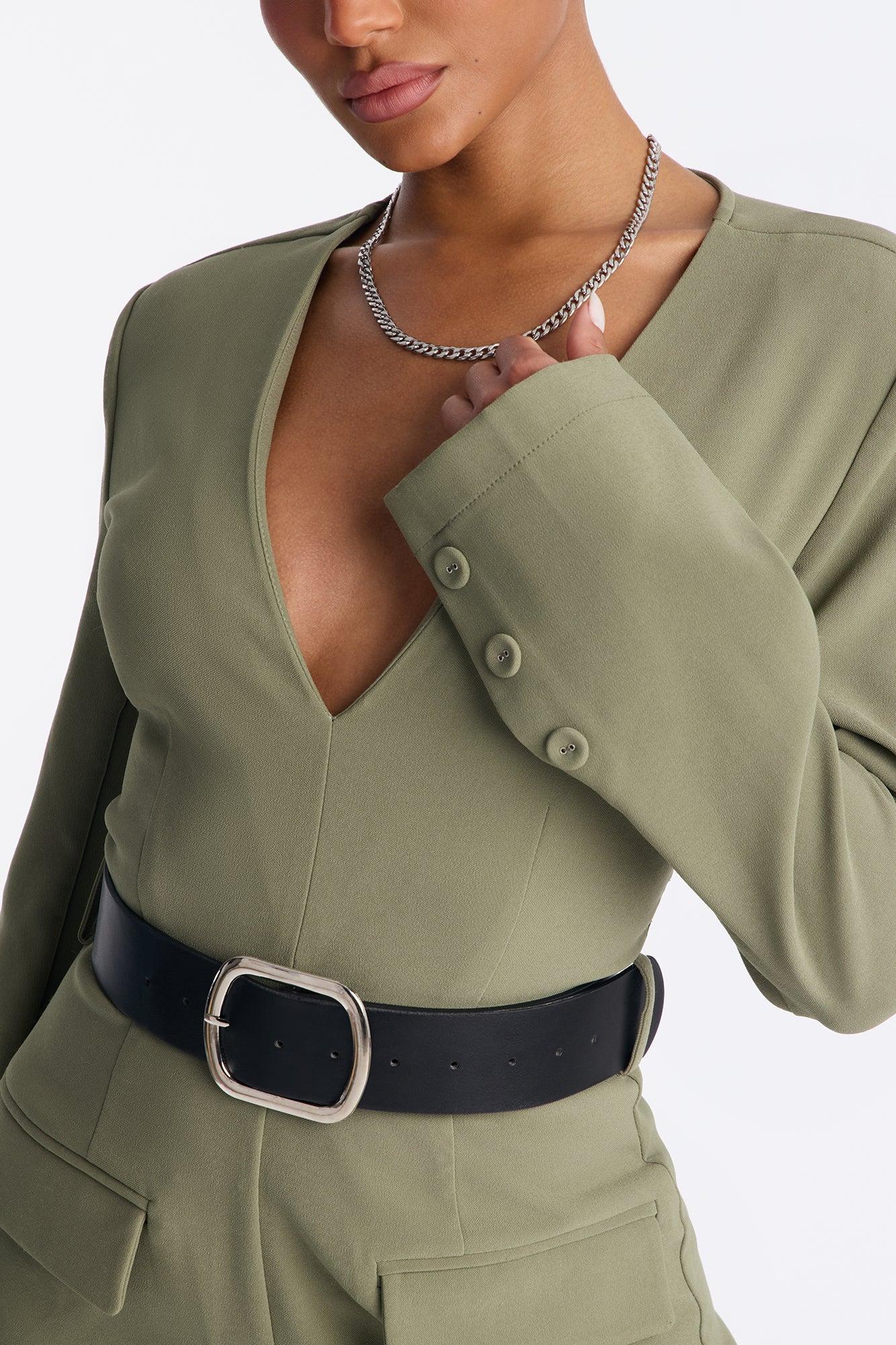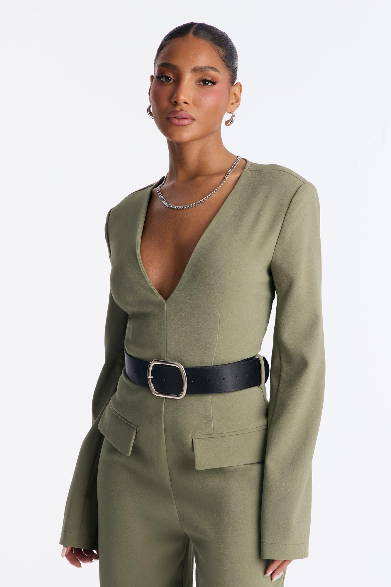 Buckle Up Crepe Belted Jumpsuit - Olive Female