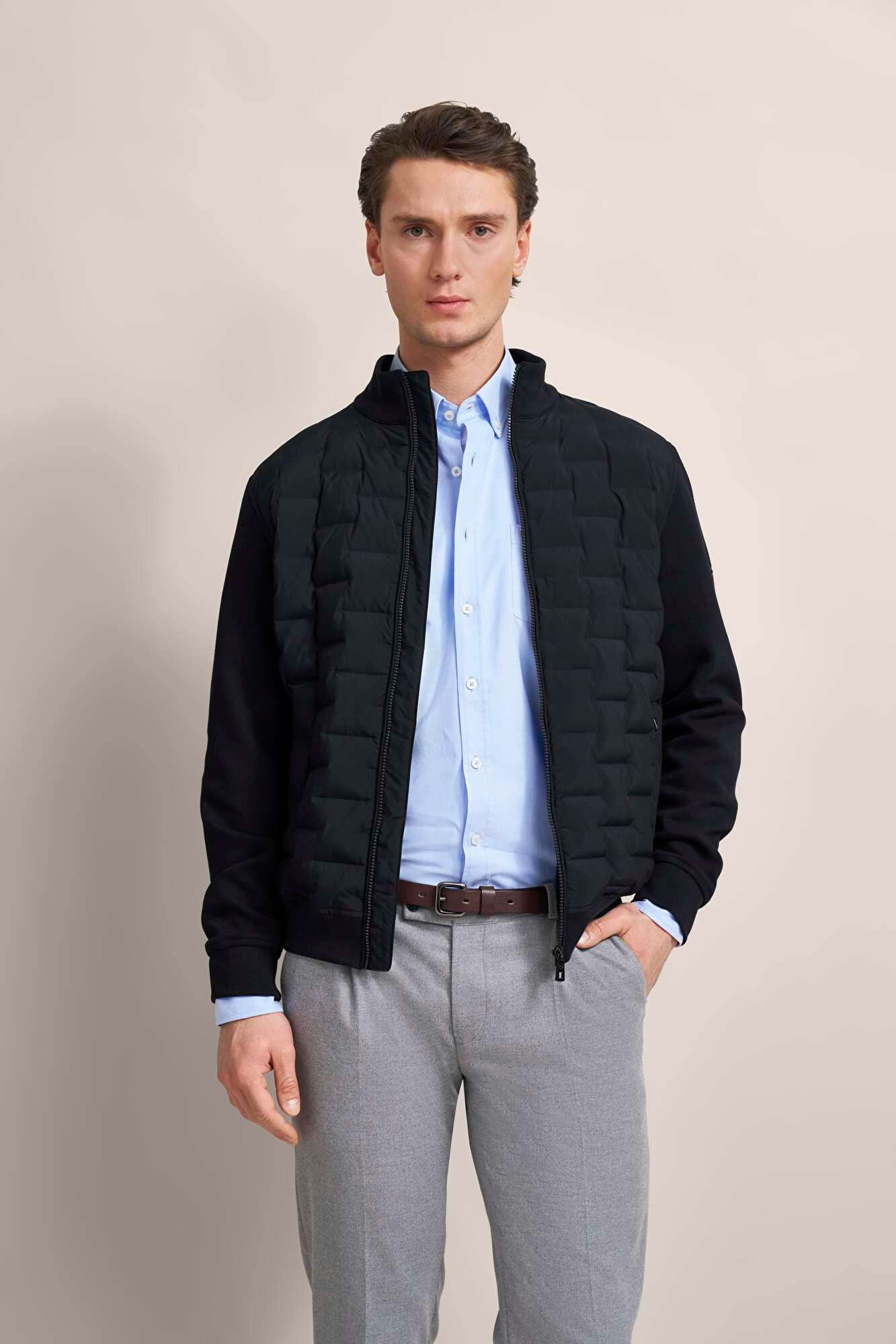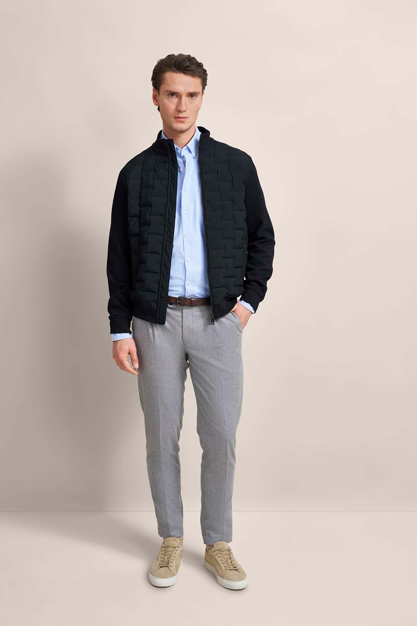 Stay stylish and cozy in the Bugatti Quilted Jacket. Made with a padded nylon front and a cotton-elastane blend on the back and sleeves, this jacket offers both comfort and flexibility. With a modern stand-up collar, practical zip pockets, and a comfortable fit, it's perfect for cooler weather.