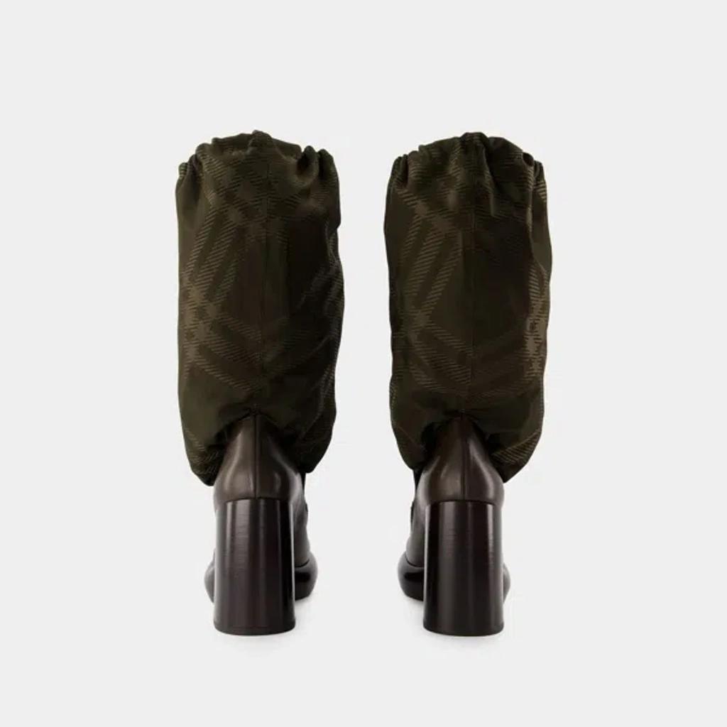 Shop Burberry Leather And Nylon Blend Wedge Boots In Multicolor from 800+ stores, starting at $398. Daniel Lee's Autumn/Winter 2024 collection for Burberry played with the idea of pieces that would feel - literally and metaphorically - warm and protective, after all, each design would need to contend with British weather. These striking ankle boots come to life as a hybrid, with a smooth leather foundation and heel, finished with a nylon check boot shaft to achieve the look of outdoor gear haphazardly tucked into your shoes.