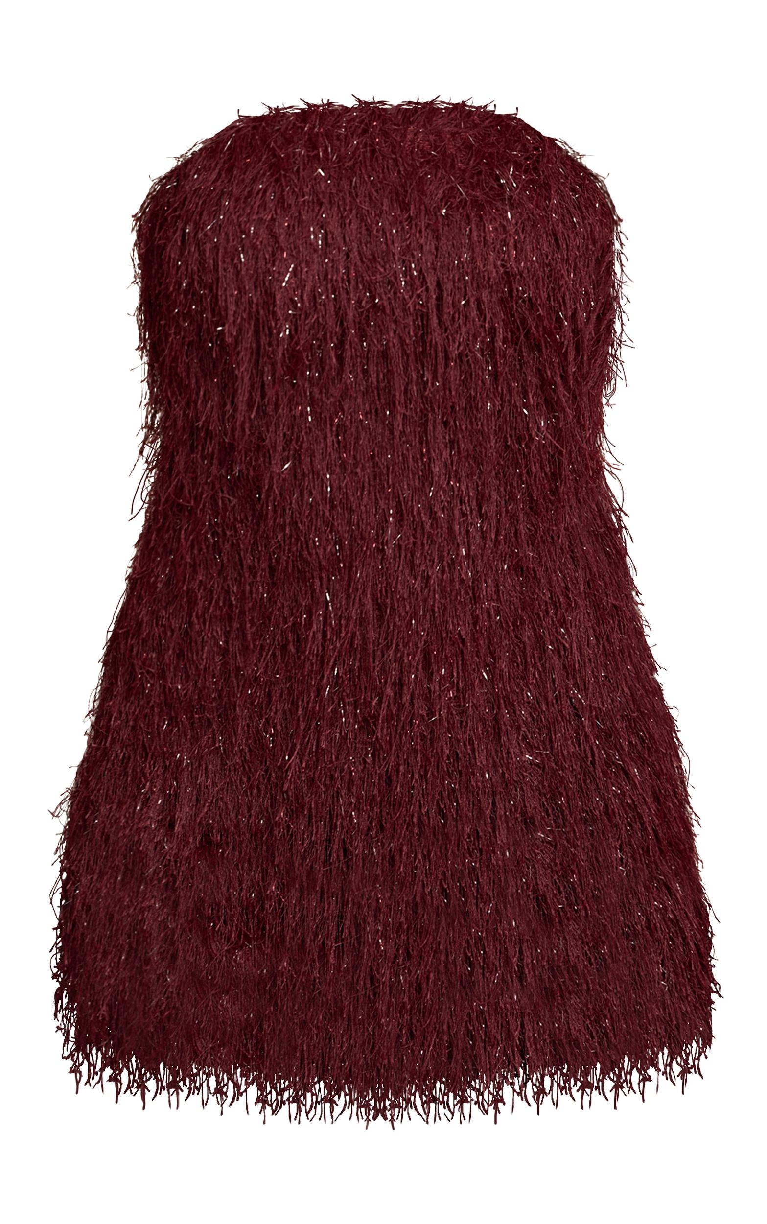 Radiate confident allure in the burgundy glitter fringe bandeau bodycon dress. Showcasing a bandeau neckline, bodycon fit, shimmering glitter, and dynamic fringe. Perfect for unforgettable evening events demanding maximum impact. Pair with sleek ankle boots and a compact black bag for a polished event look.Length approx 58.5cm/23inch (Based on sample size US 4)Model wears size UK 8/ EU 36/ AUS 8/ US 4Model Height - 5ft 8inchp]:!mb-4inch>Brand: PrettyLittleThingCategory: DressesProduct type: Bodycon DressColor: BurgundyMaterial: Faux FurOccasion: Occasion