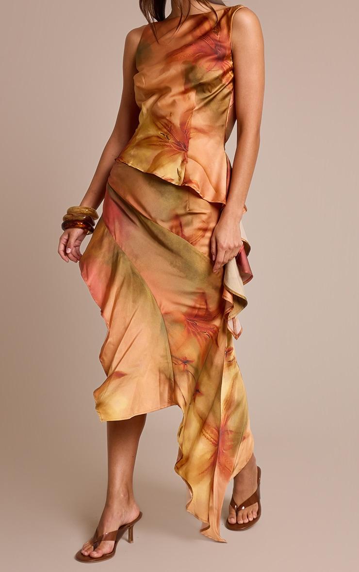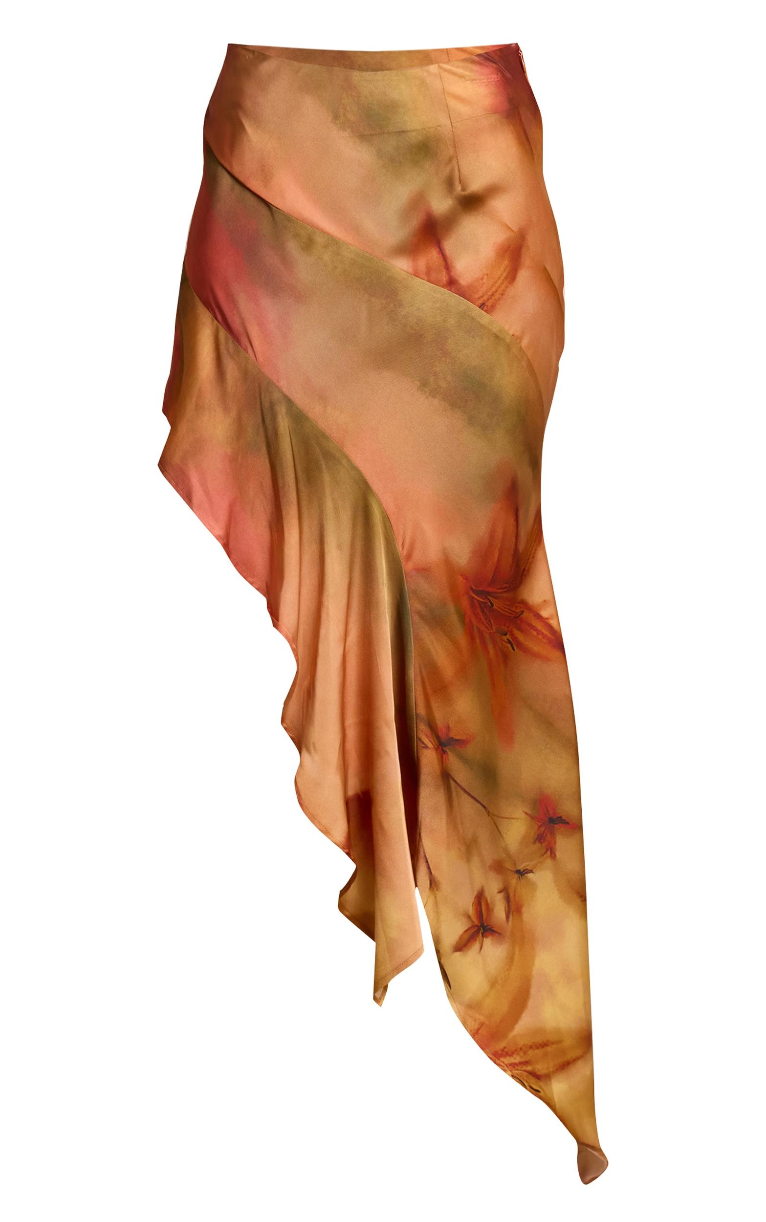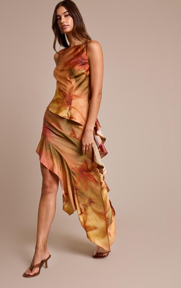 Showcase your shape in the burnt orange printed satin asymmetric ruffle midi skirt. Cut from a stretch fabric blend, it features a flexible yet sculpted form. Wear with statement earrings, neutral heels and the matching top for a chic two piece set.Length approx 84cm/33inch (Based on sample size US 4)Model wears size UK 8/ EU 36/ AUS 8/ US 4Model Height - 5ft 8inchp]:!mb-4inch>Brand: PrettyLittleThingCategory: Co-ordsProduct type: Midi SkirtColor: Burnt OrangeMaterial: SatinDesign: PrintOccasion: Evening