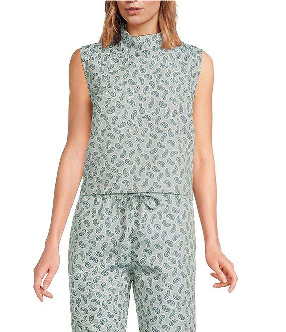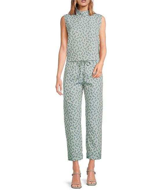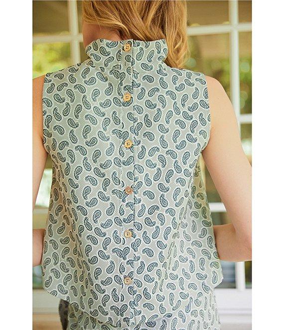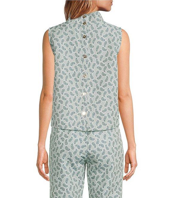 Buru Cropped Sleeveless Paisley Print Mock Neck Button Back Cropped Coordinating Boxy Top