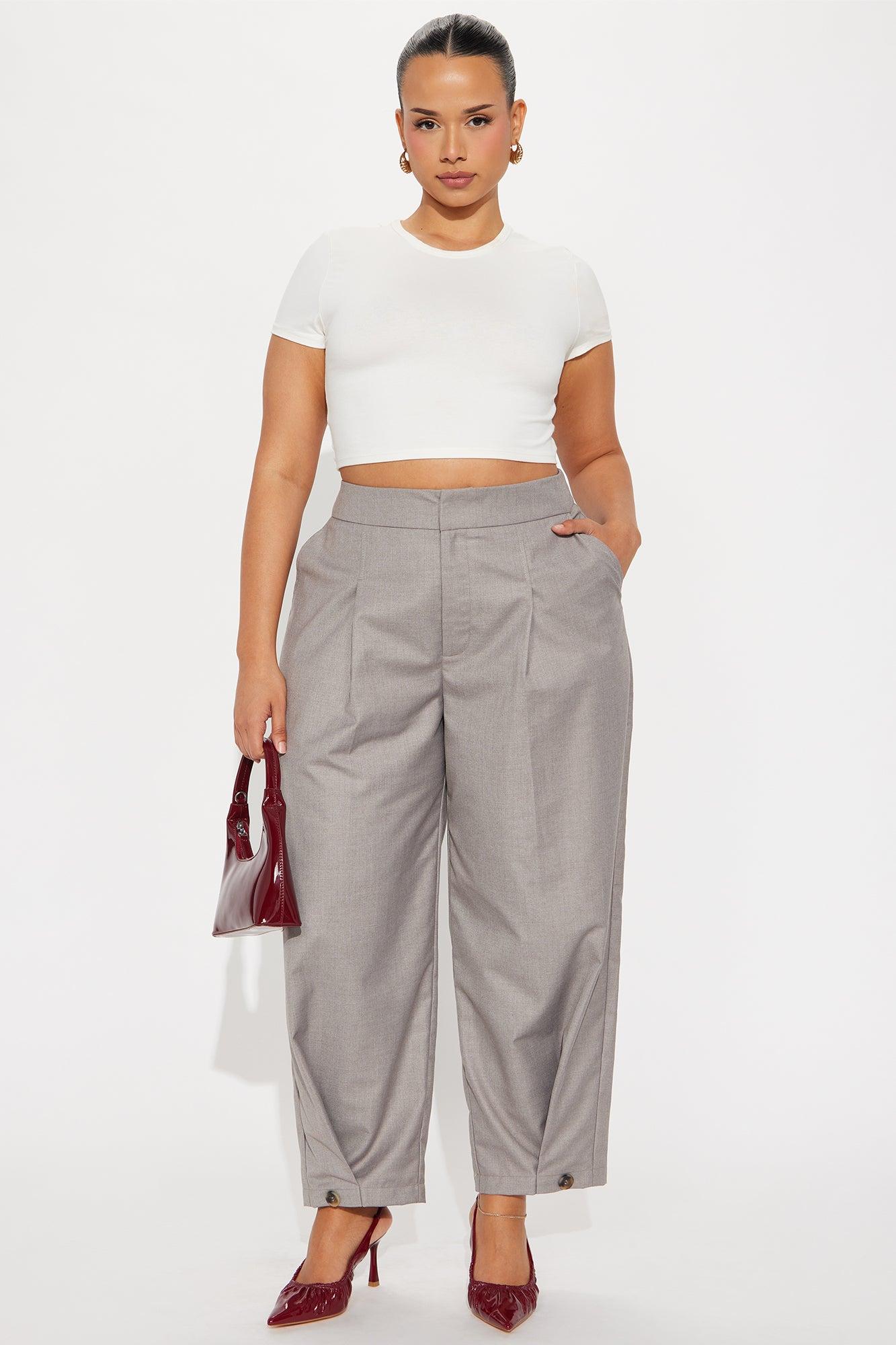 Available In Grey And Olive. Trousers Hook Closure Pleated Detail High Rise Balloon Leg Faux Back Pockets Self: 80% Polyester 20% Viscose Imported