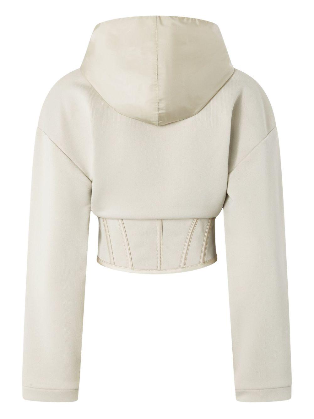 PINKO Bustier zip-up hoodie | White | white | front zip fastening | classic hood | cropped | corset style | Polyester/Cotton | Hoodies | Tops | Clothing | Women