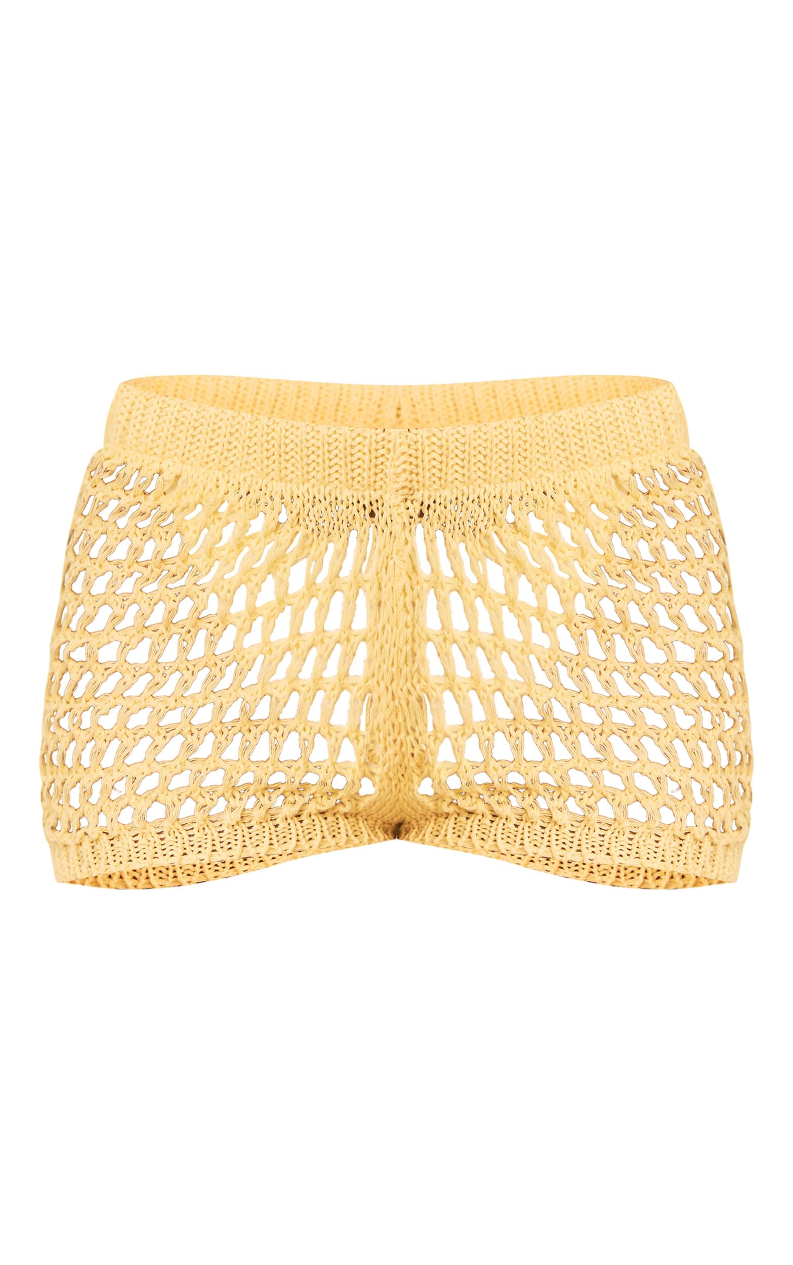 Make a statement in these butter yellow min crochet beach shorts. Brought to you in a butter yellow crochet material with a mini design. Team these beach shorts with a triangle fit bikini and some statement accessories for a look like no other. Length may vary due to crochet knitLength approx 33cm/13inch (Based on sample size S)Model wears size SModel Height - 5ft 7inchp]:!mb-4inch>Brand: PrettyLittleThingCategory: SwimwearProduct type: Beach ShortsColor: Butter YellowMaterial: KnitOccasion: Day