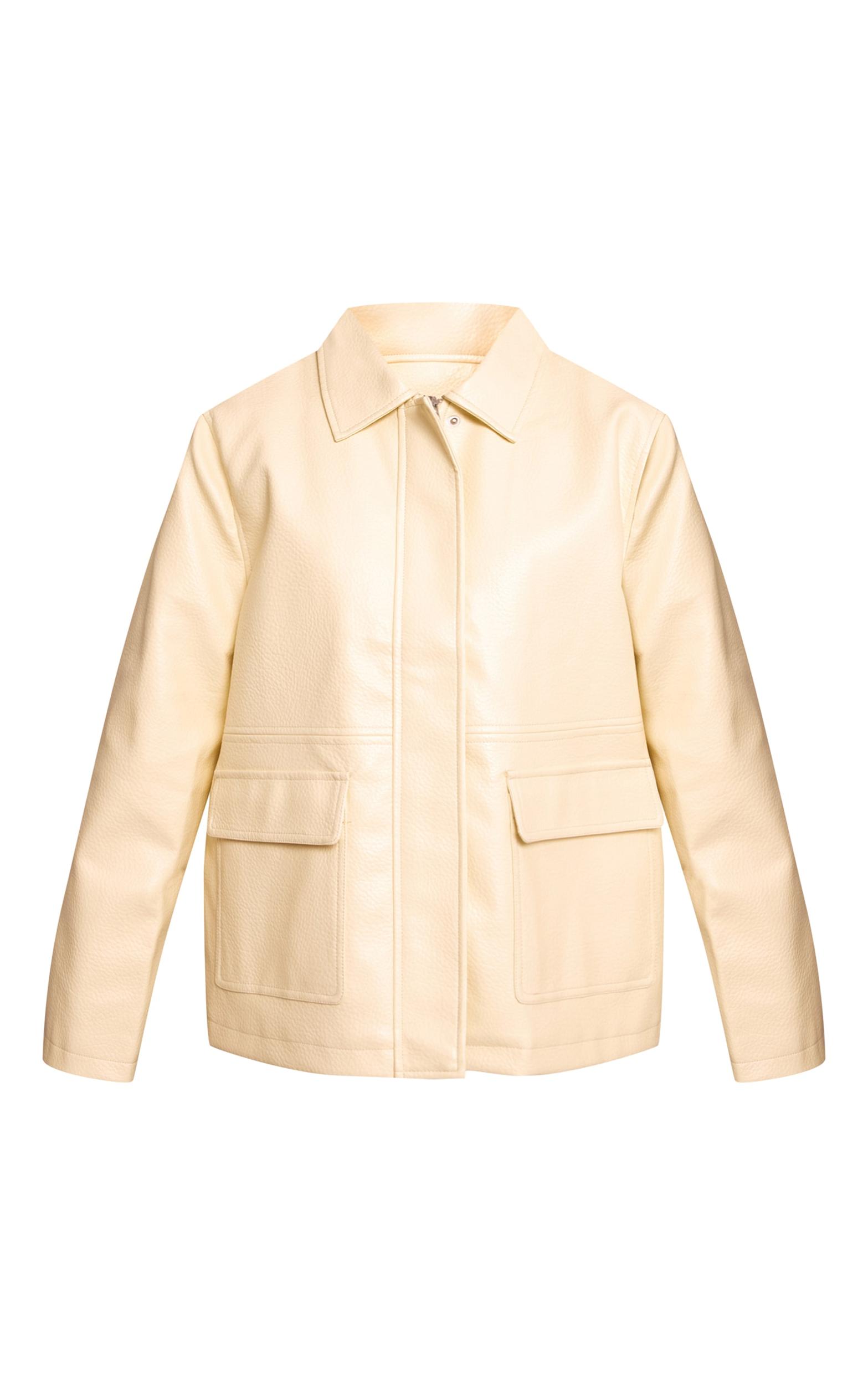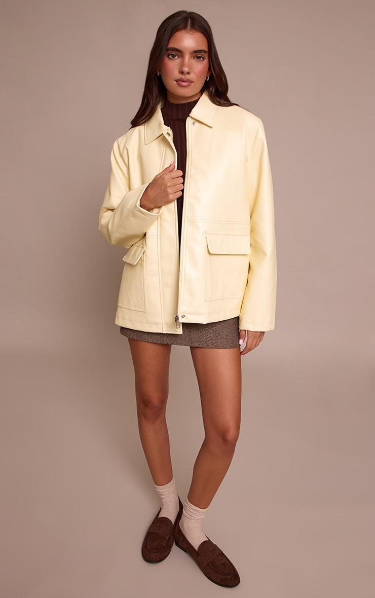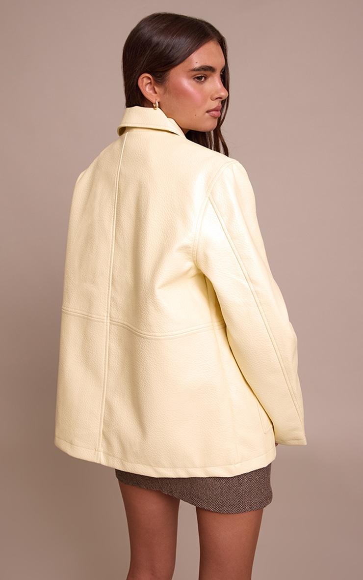 Step into statement outerwear with the buttercream faux leather oversized jacket. Made from smooth buttercream faux leather, this jacket is designed in an oversized fit with structured shoulders and clean lines. Wear over a mini skirt or denim for a bold everyday look.Length approx 48.5cm/19inch (Based on sample size S)Model wears size SModel Height - 5ft 7inchp]:!mb-4inch>Brand: PrettyLittleThingCategory: OuterwearProduct type: Biker JacketColor: Butter Cream..Material: Faux LeatherOccasion: Day