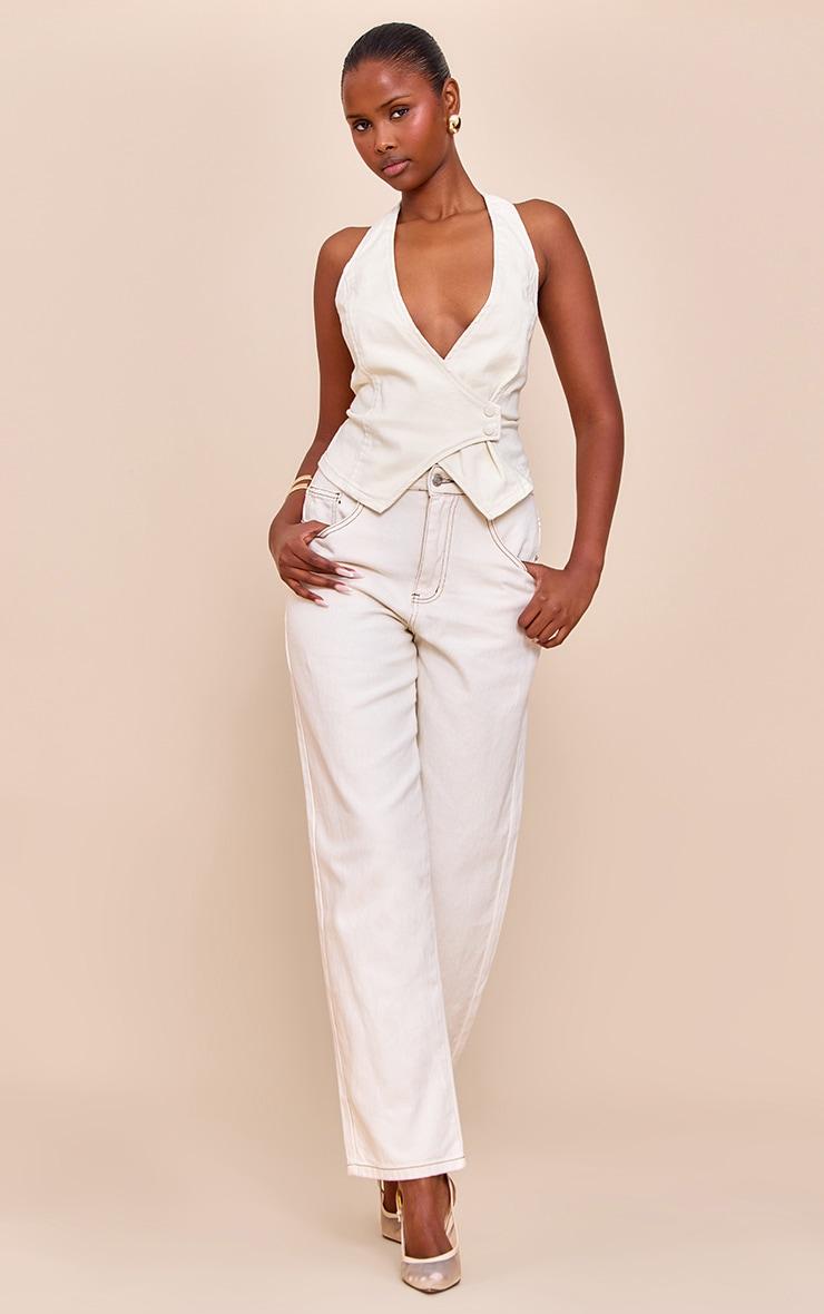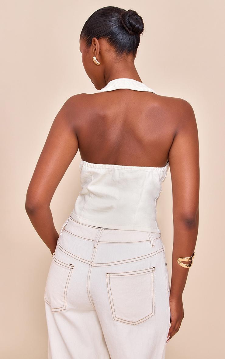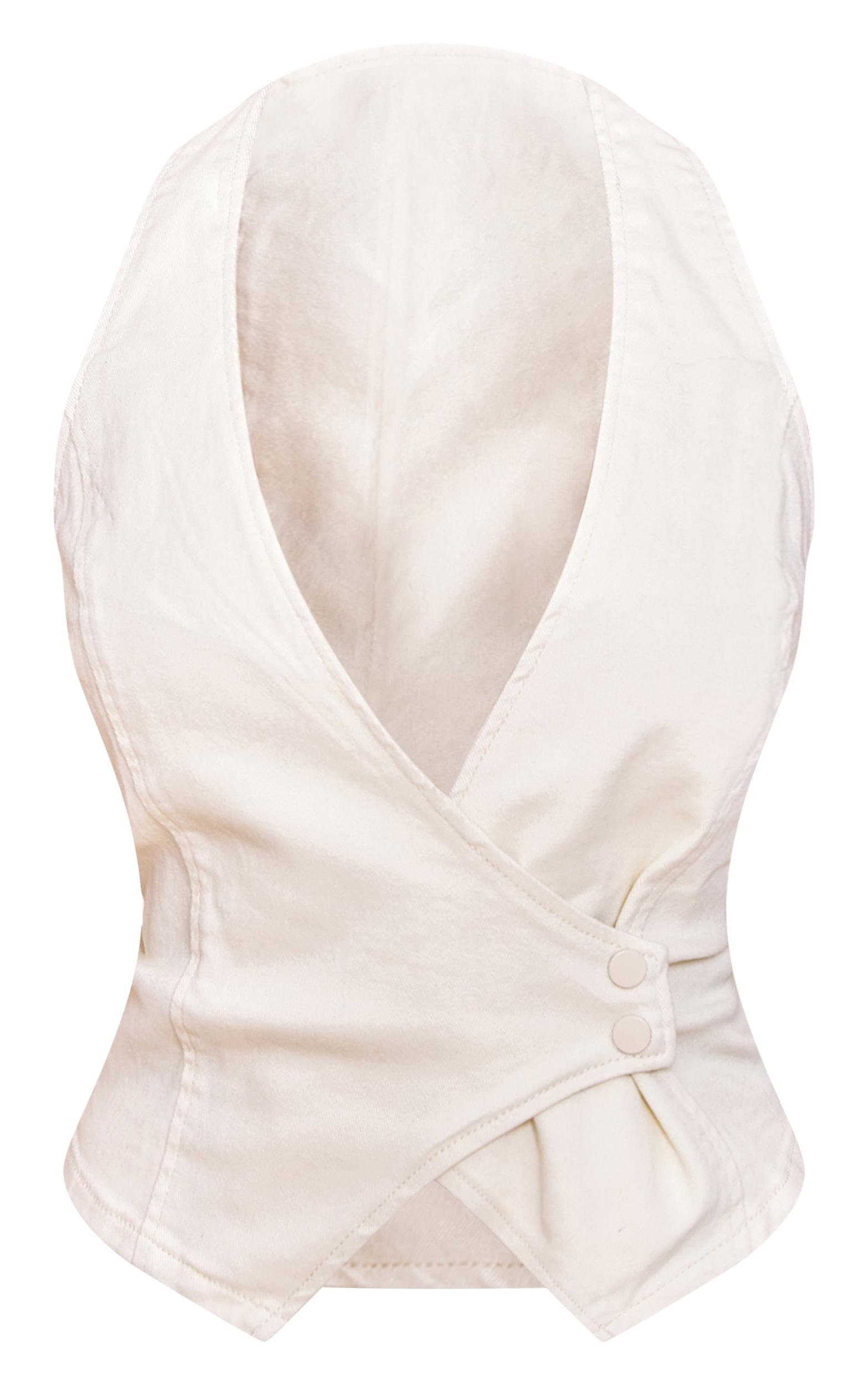 Redefine denim's potential with a confident twist. The buttercream yellow halterneck denim top offers a fresh take on classic styling, featuring a deep V-neckline and a chic wrap-over design secured by a distinctive double-button fastening at the waist. Its tailored cut and flattering peplum detail create an artful shape, perfect for day wear. Pair this versatile piece with high-waisted wide-leg pants for a refined day look, or style it with coordinating jeans and cream heels for an elevated ensemble that speaks volumes.Length approx 48.5cm/19inch (Based on sample size US 4)Model wears size UK 8/ EU 36/ AUS 8/ US 4Model Height - 5ft 9inchp]:!mb-4inch>Brand: PrettyLittleThingCategory: DenimProduct type: Denim TopColor: Butter Cream..Material: Rigid DenimNeckline: HalterneckSleeves: SleevelessOccasion: Day