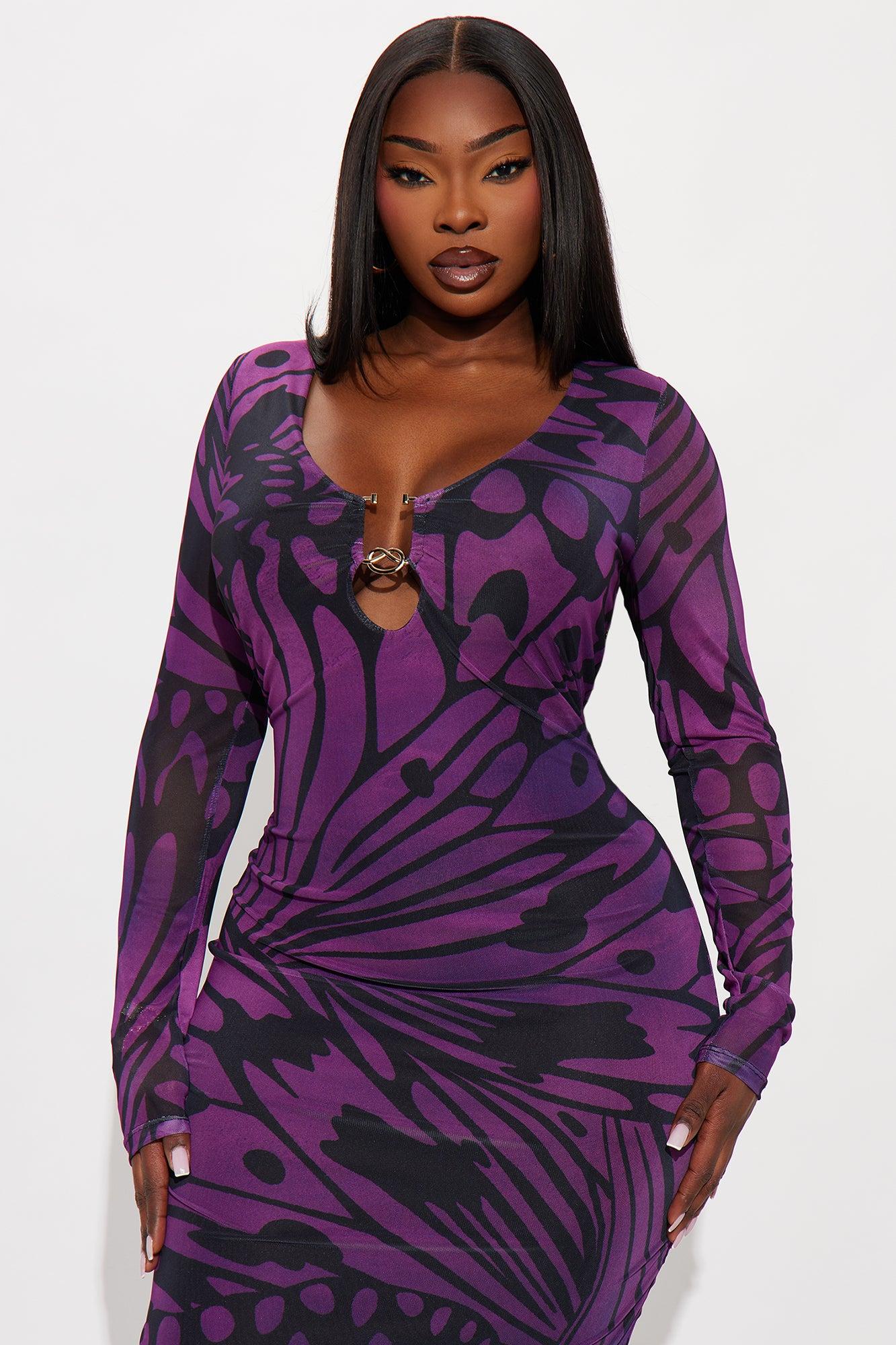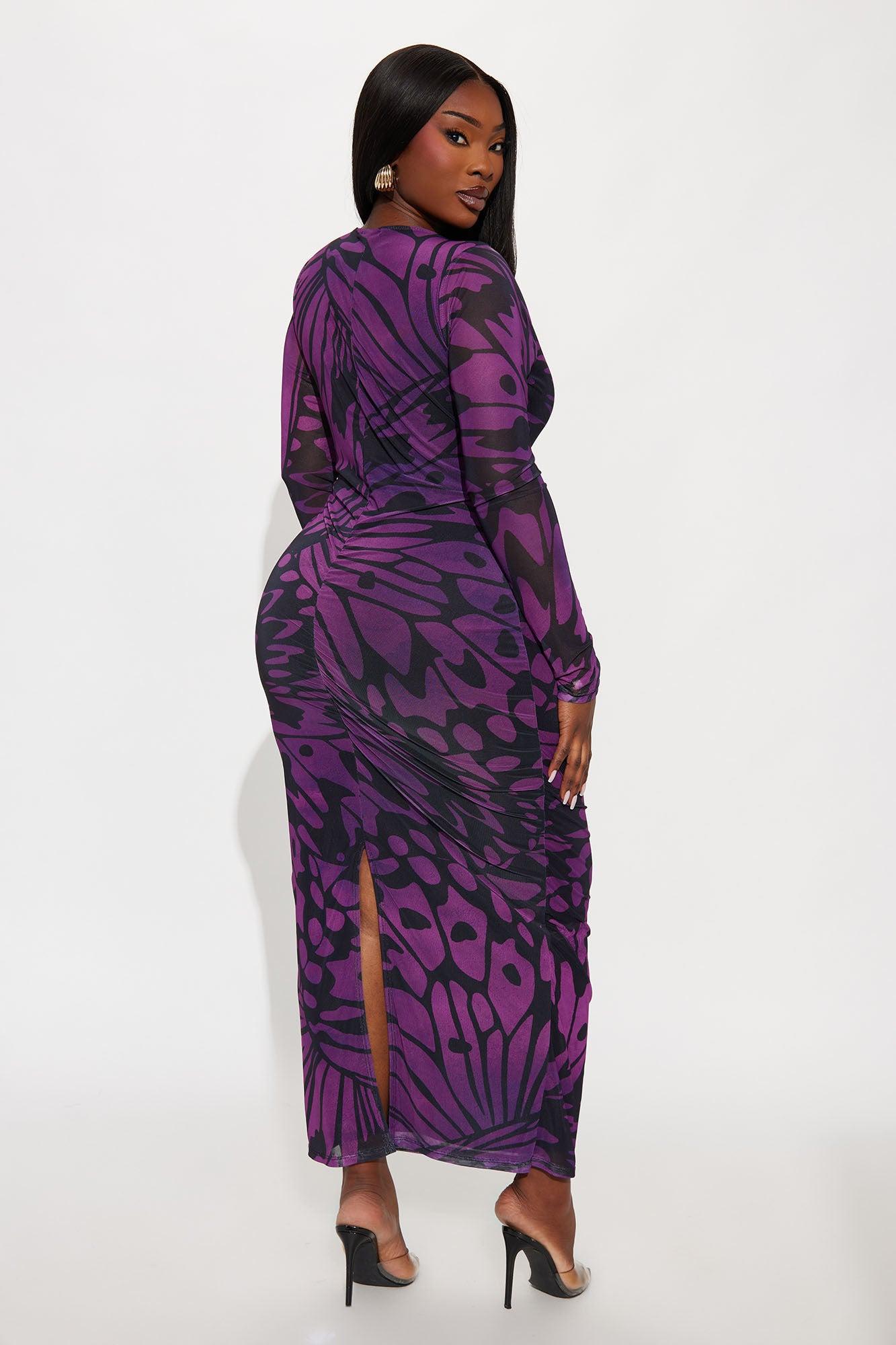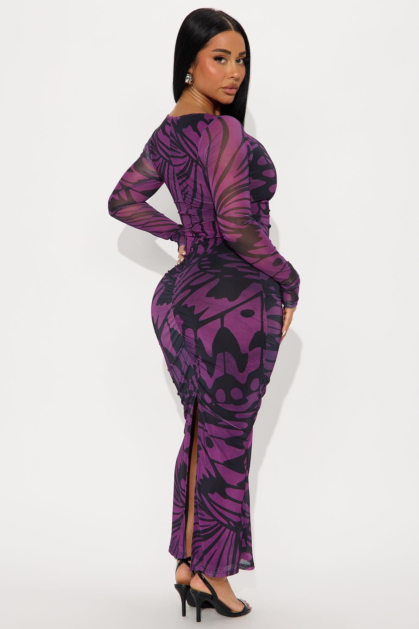 Butterfly Effect Long Sleeve Mesh Maxi Dress - Purple Female