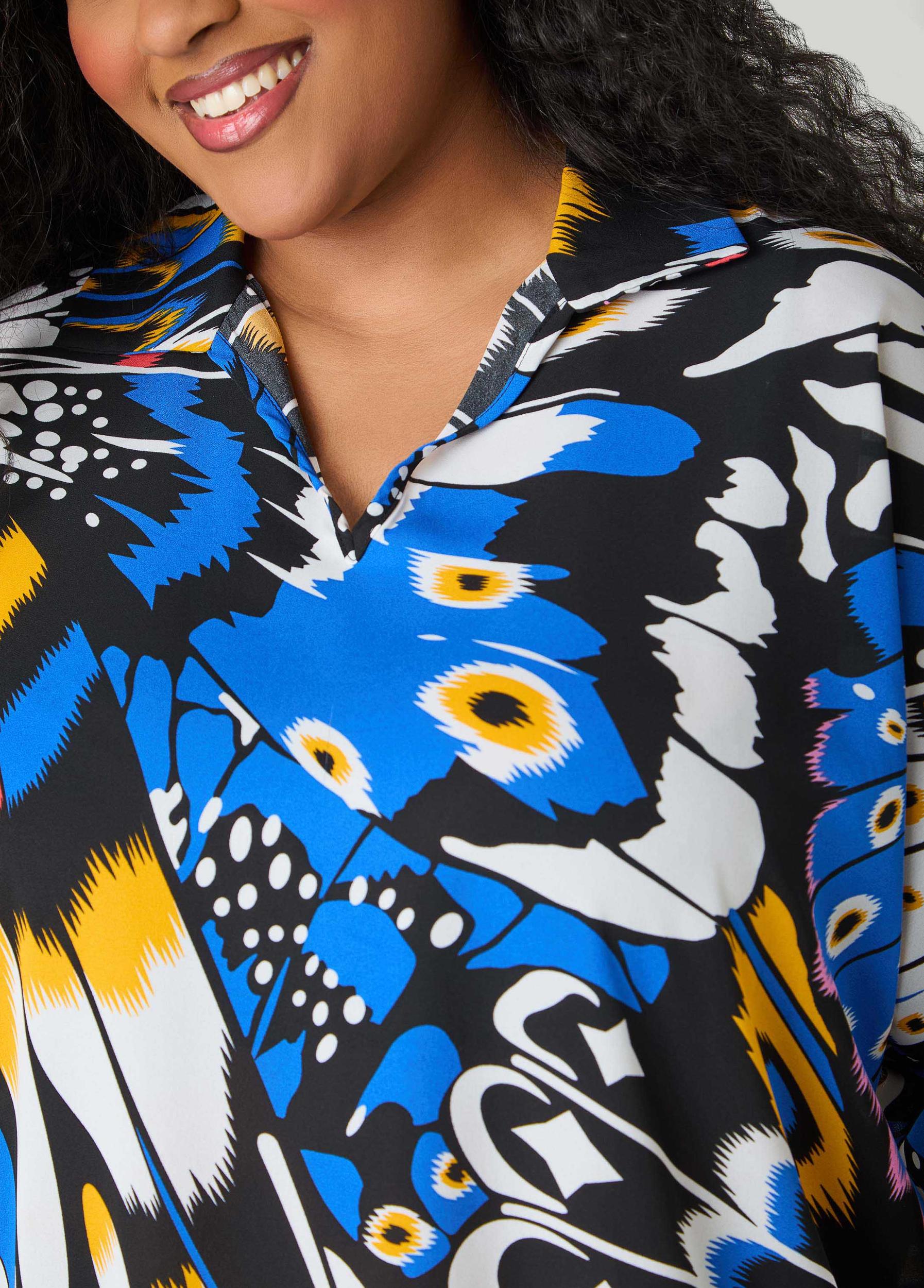 Butterflies dance across this crepe tunic, finished with a hi-low hem for a relaxed, whimsical silhouette.
