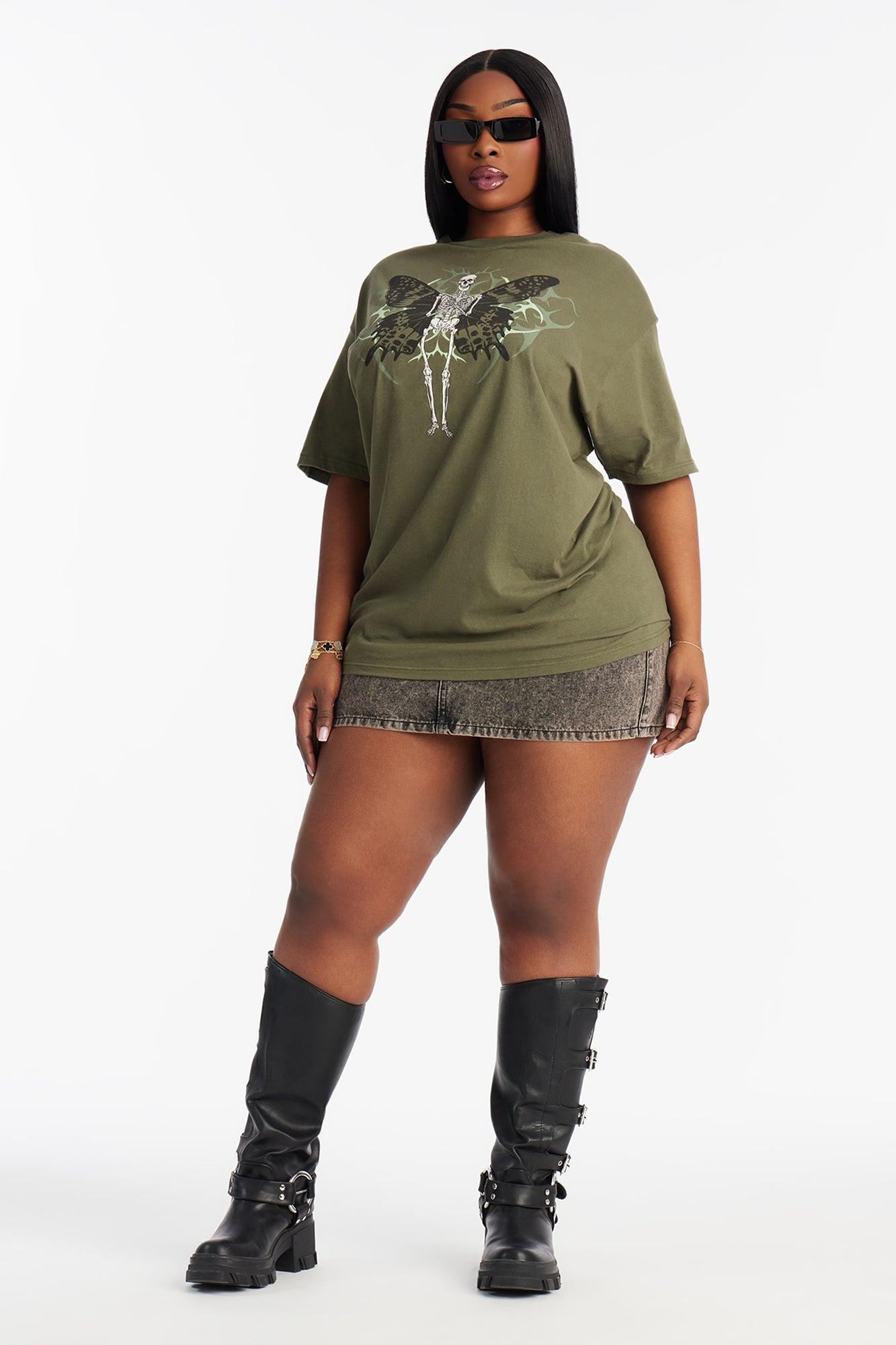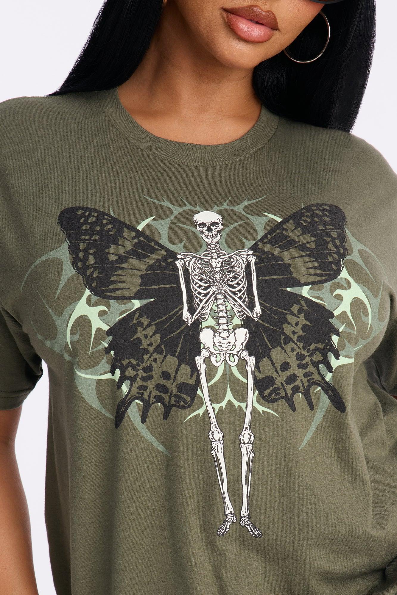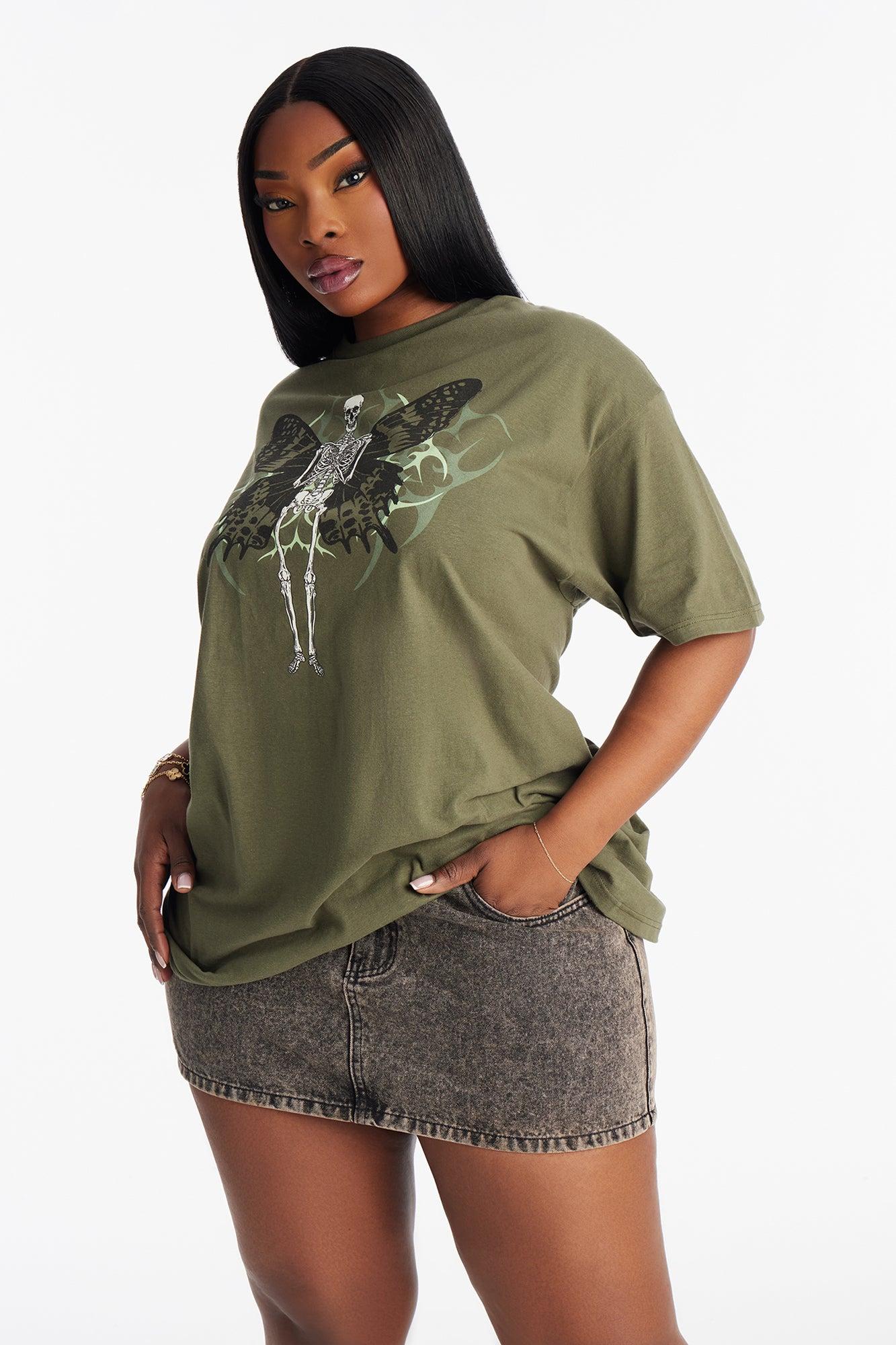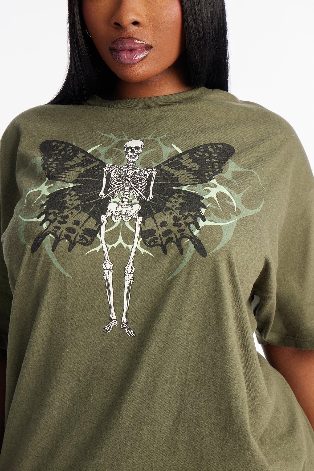 Butterfly Skeleton Oversized Tee - Olive Female