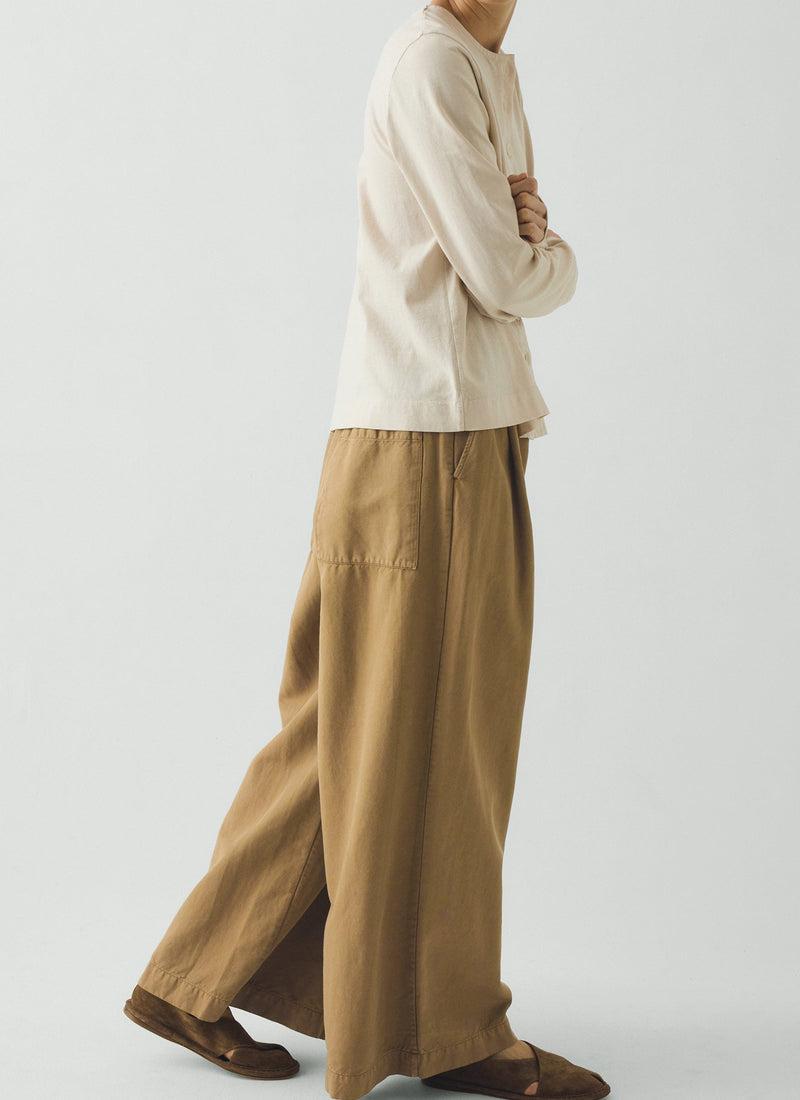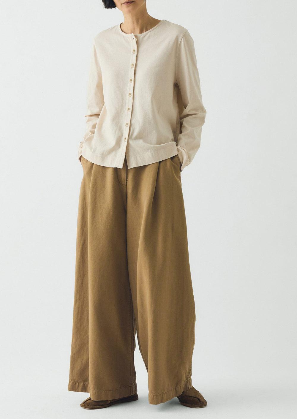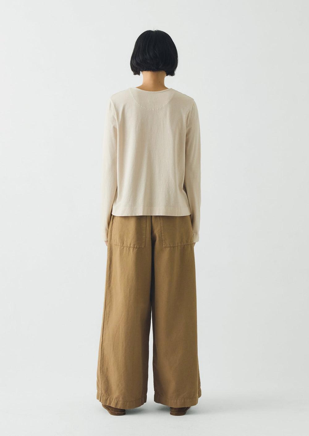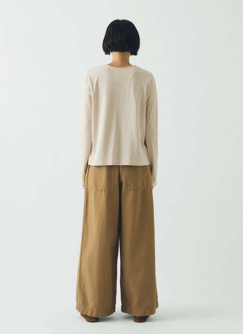 A neat row of small corozo buttons run down the front of our long-sleeved tee. Made from organic cotton jersey to an easy shape, falling to the top hip, then garment-dyed for a rich depth of colour.