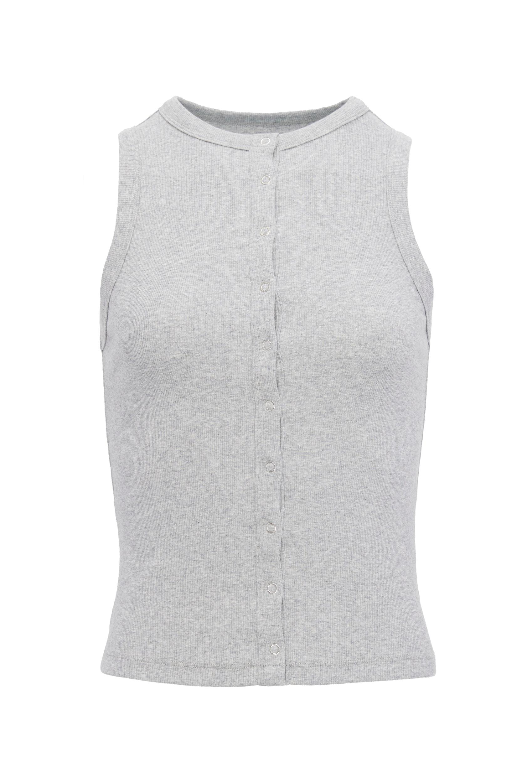 Grey Collared Button Tank Top