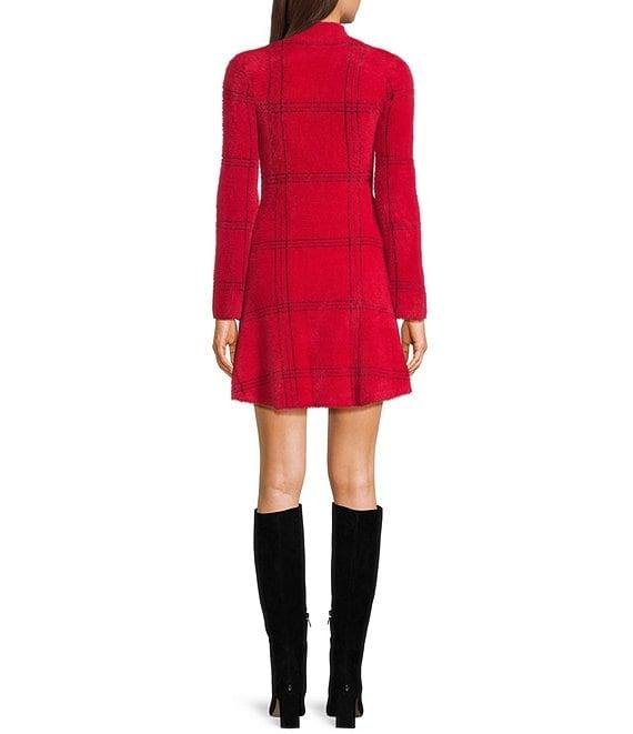 C&V Chelsea & Violet Long Sleeve Plaid Flare Sweater Dress