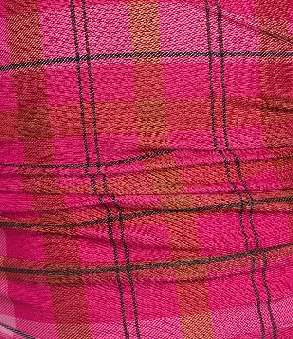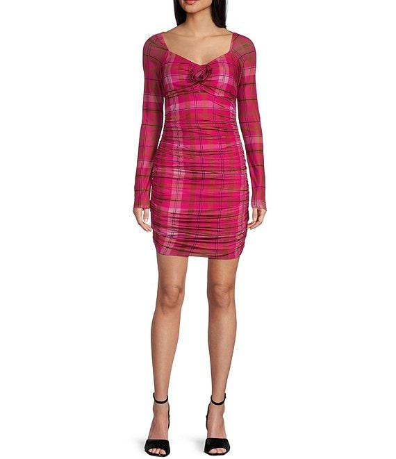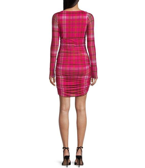 C&V Chelsea & Violet Long Sleeve Plaid Printed Rosette Mesh Dress