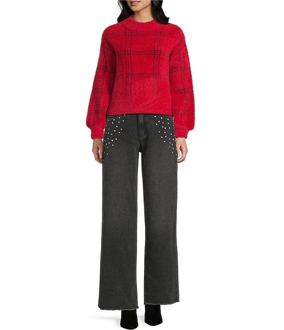 C&V Chelsea & Violet Plaid Eyelash Sweater