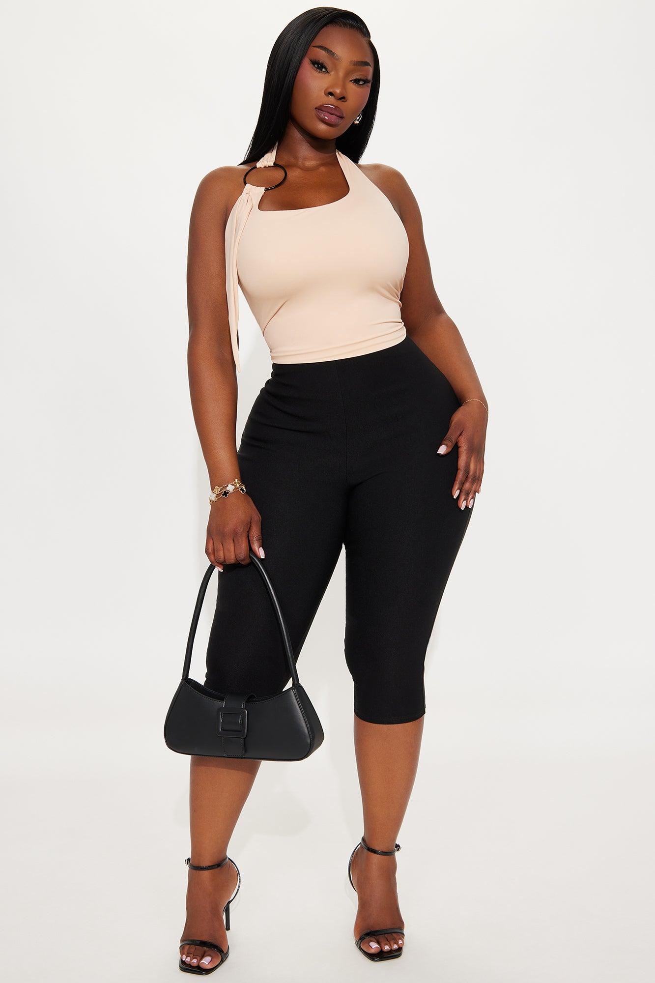 Available In Nude. Halter Top Stretch Hardware Detail Scoop Neck Cropped Shell: 82% Nylon 18% Spandex Lining: 82% Nylon 18% Spandex Imported