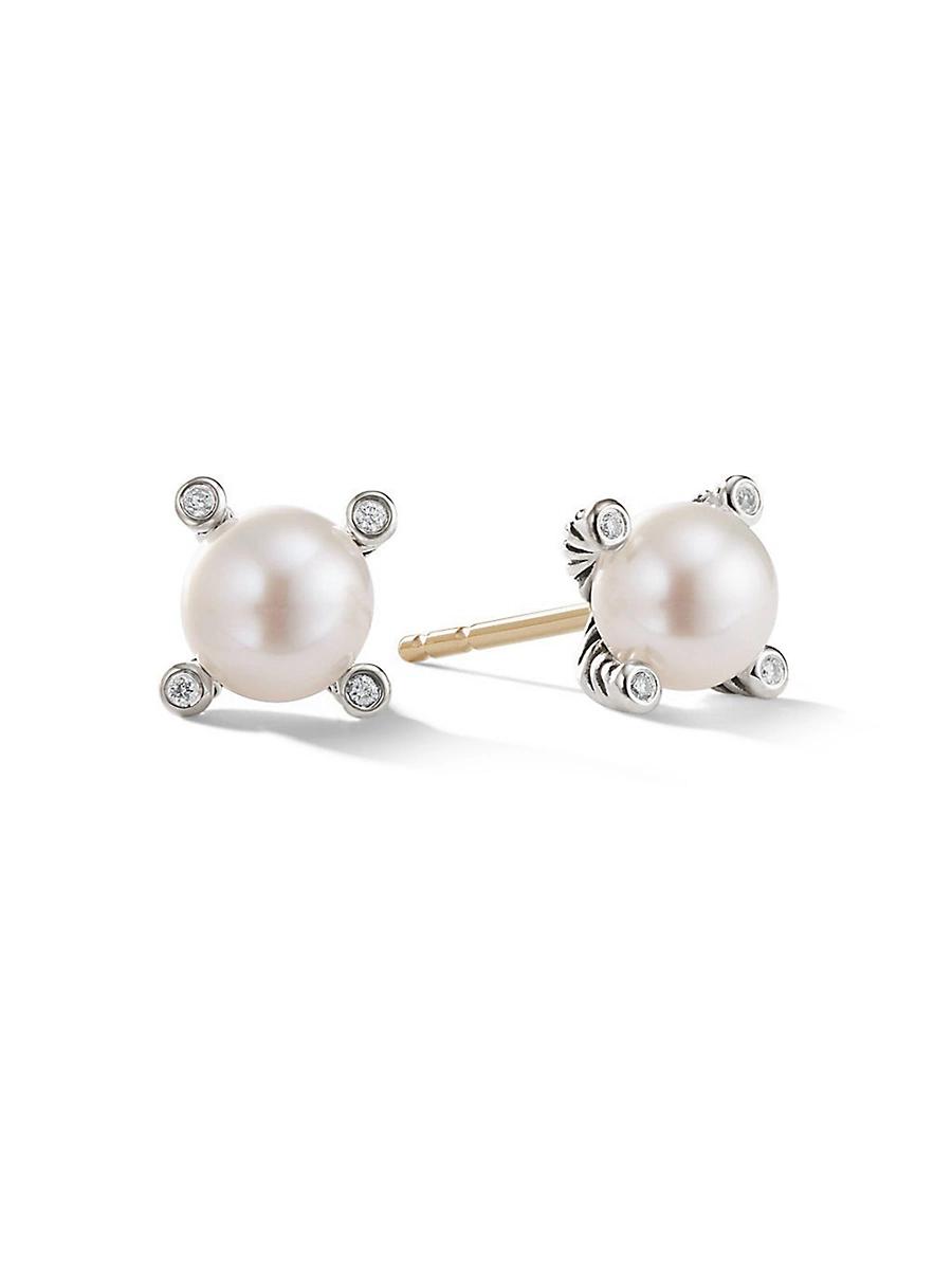 Cable Collectibles Pearl Earrings with Diamonds and Silver, 7mm