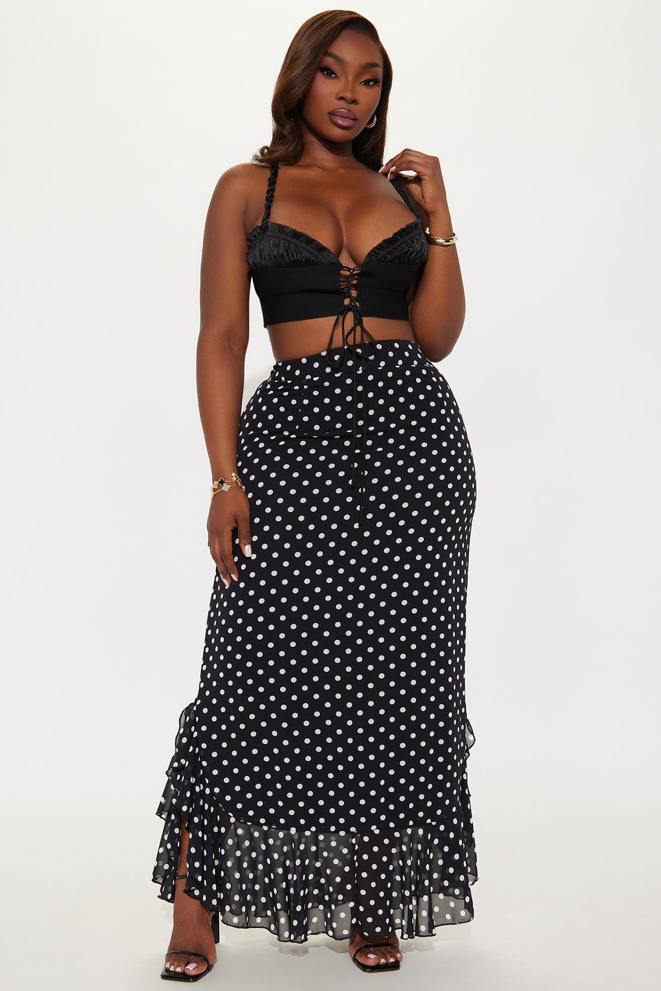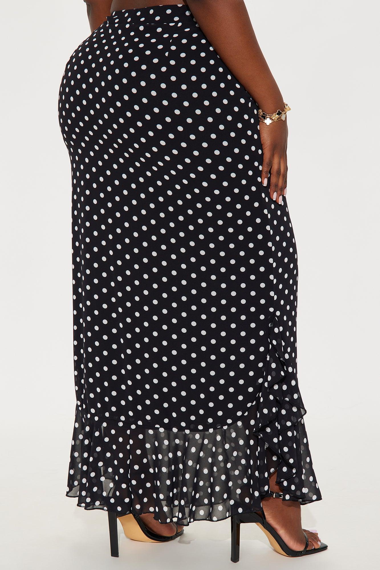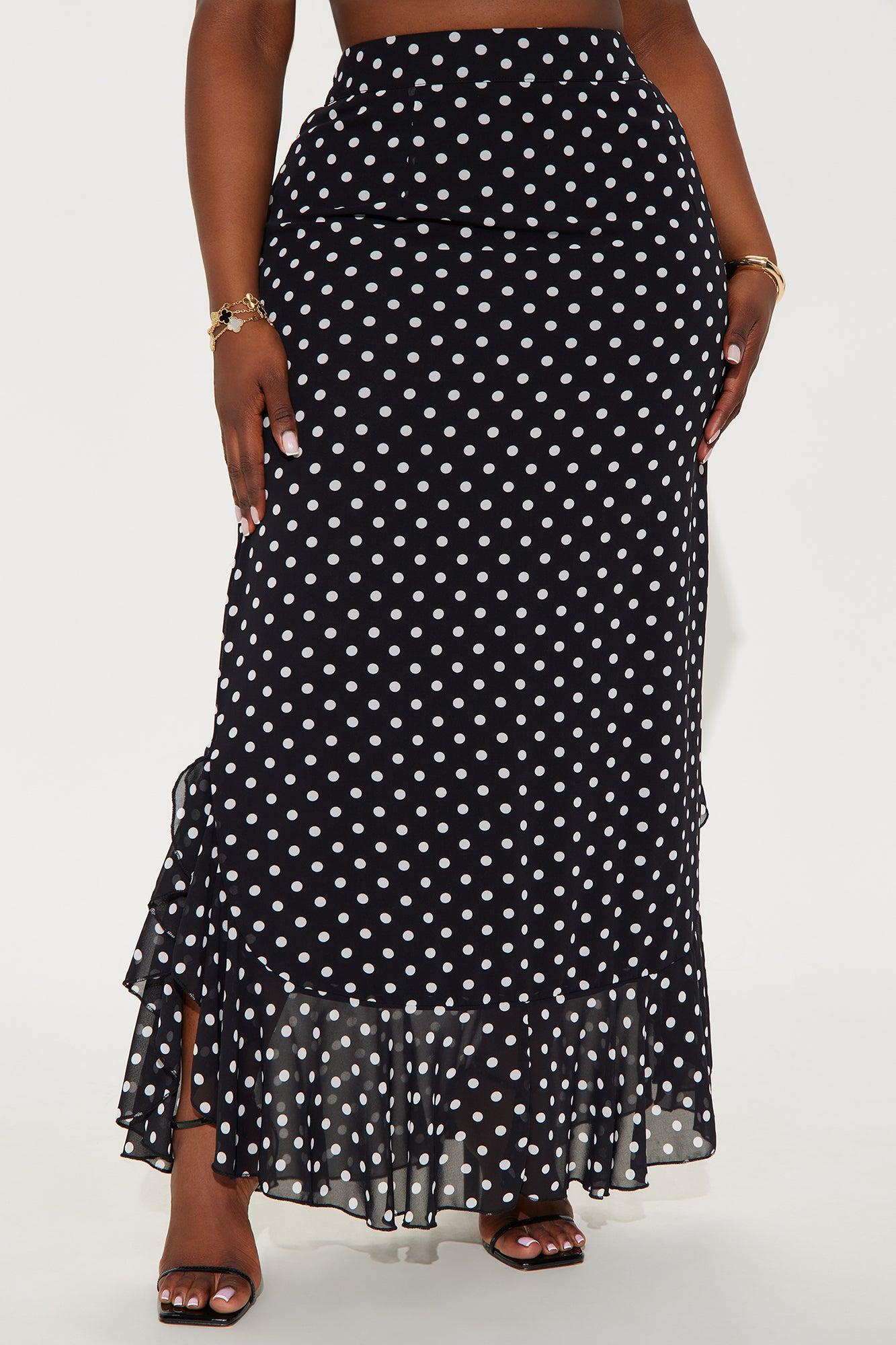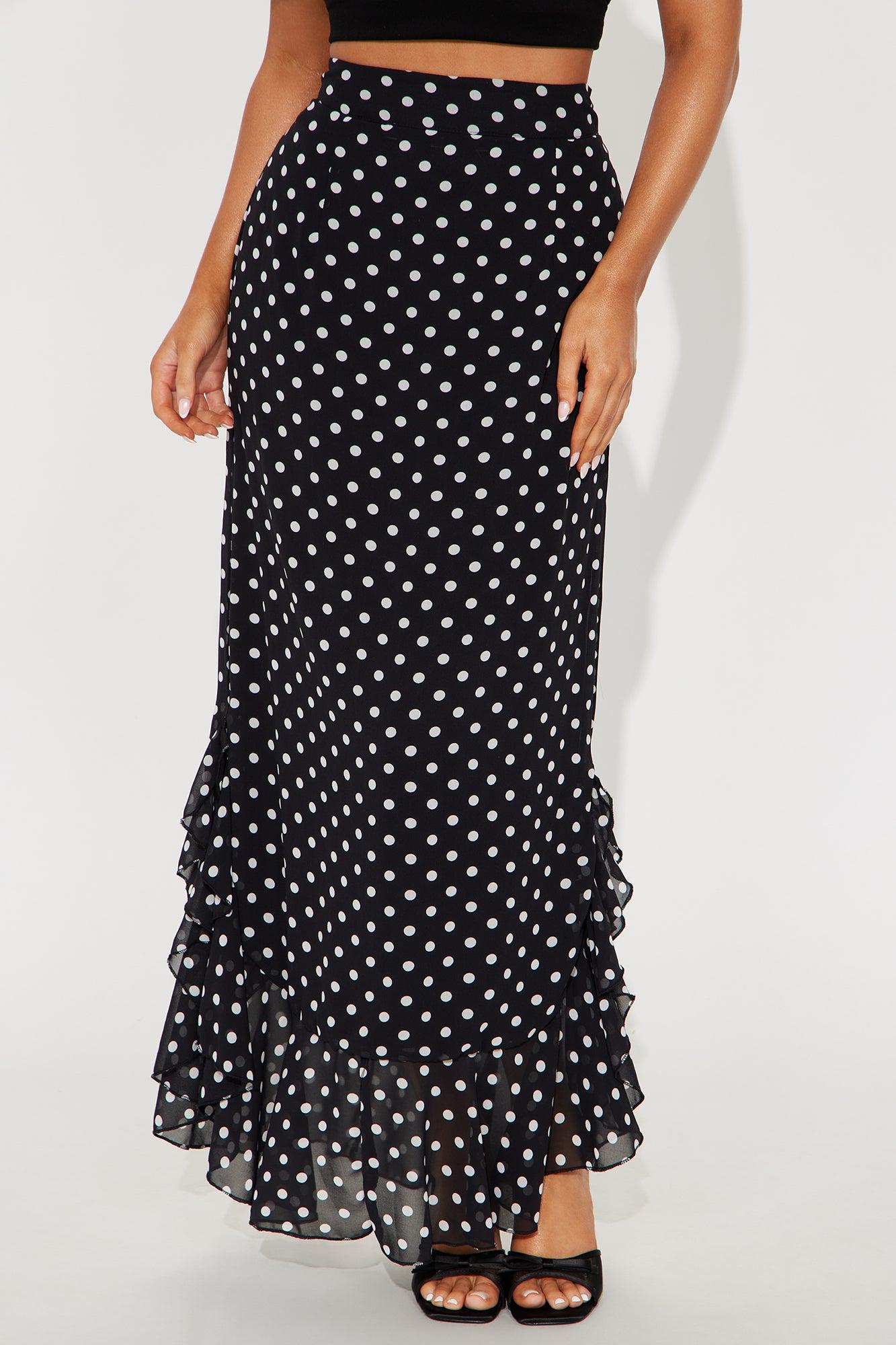 Caitlynn High Rise Polka Dot Ruffle Hem Midi Skirt - Black/White Female
