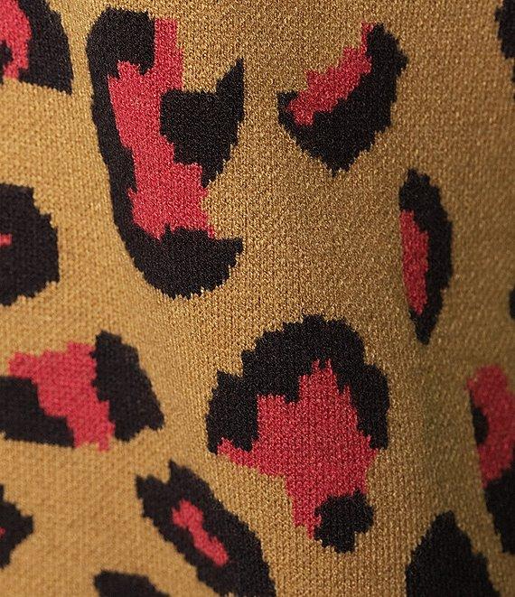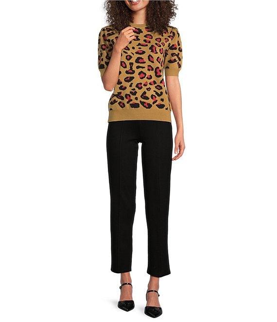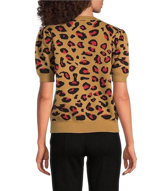 From Calessa Petite, this sweater features: Knit fabrication Round neckline Short sleeves Comfort fit Intarsia animal print Contrast trim at neckline, cuffs and hem Pullover construction Approx. 24" length Polyester/spandex Hand wash/line dry Imported.