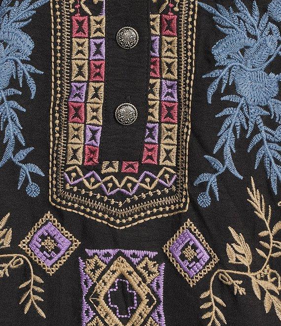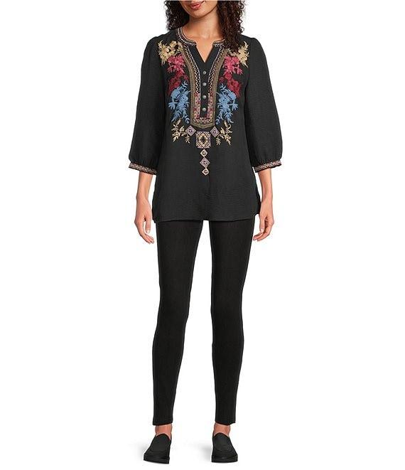 Calessa Petite Size Woven Embroidered Split V-Neck 3/4 Sleeve Tunic