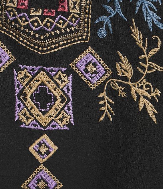Calessa Embroidered Split V-Neck Long Sleeve Tunic