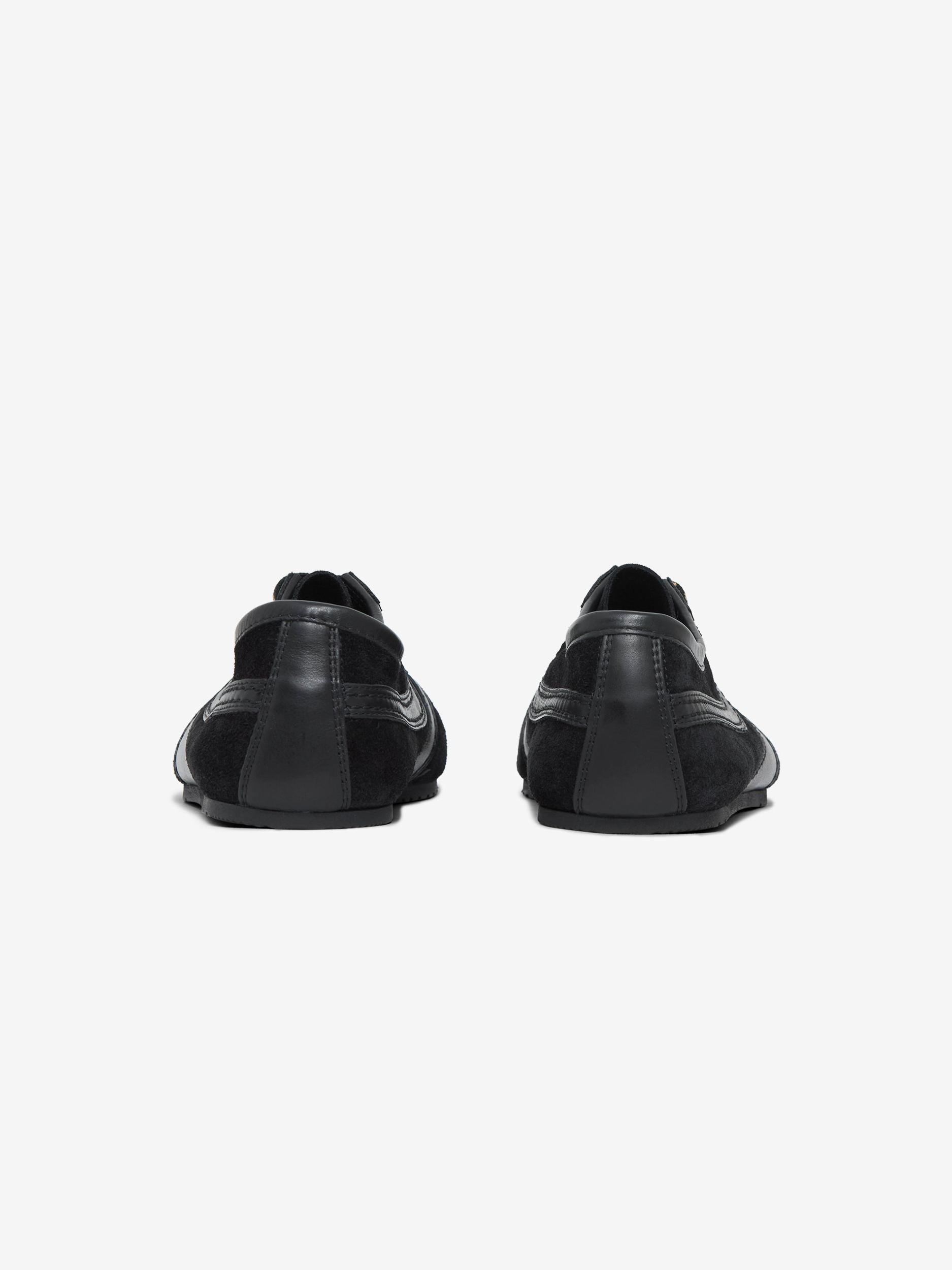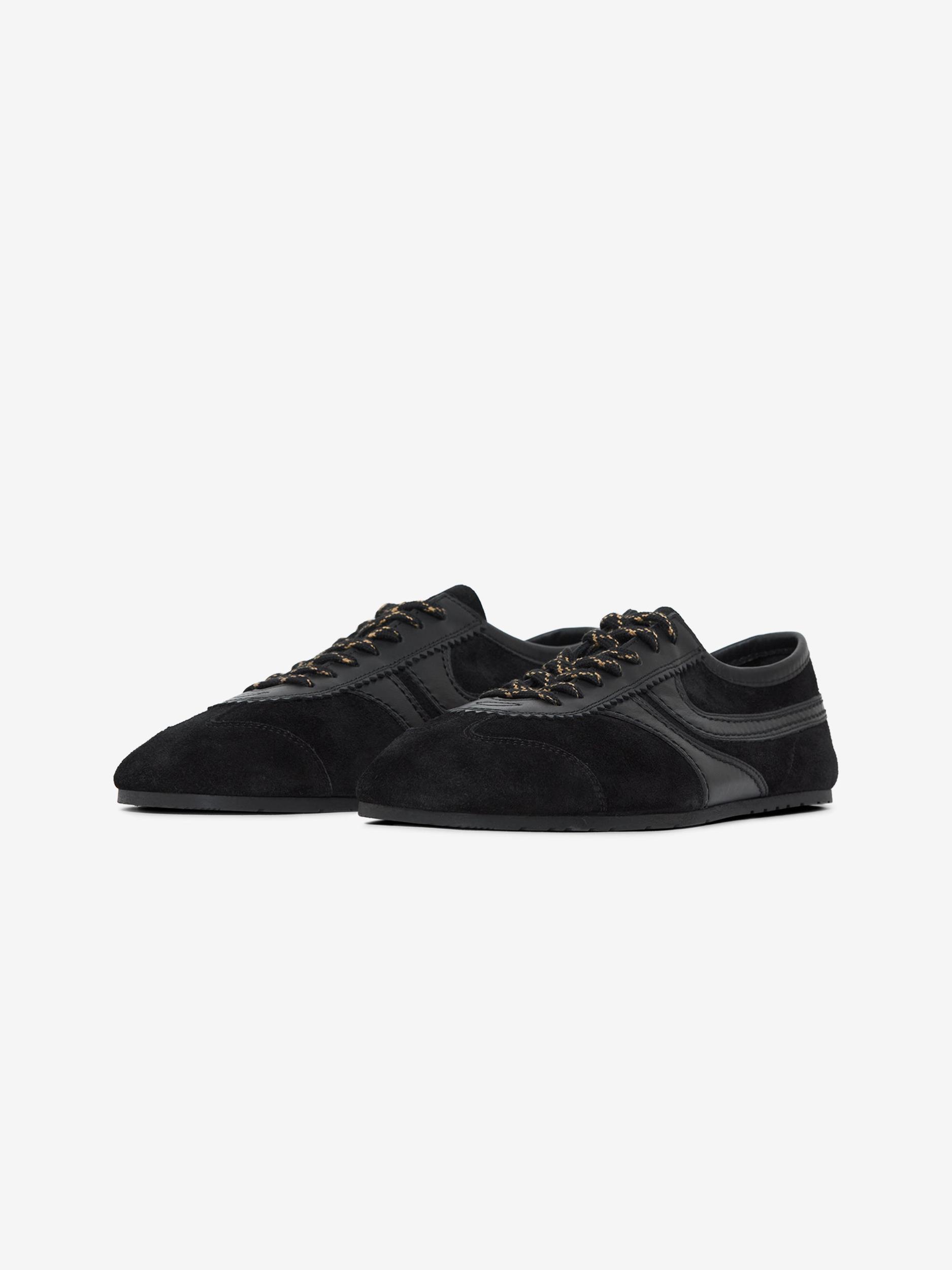 Dries Van Noten brings his refined minimalism to a staple silhouette with the Calf Leather Sneakers in black. Crafted from smooth calf leather, the low-top profile is stripped back and versatile, with clean lines that sit between contemporary luxury and everyday wear. Subtle tonal detailing and a slim sole keep the focus on form and finish—an understated essential that slips easily into rotation. SKU: 252-021726-126-900