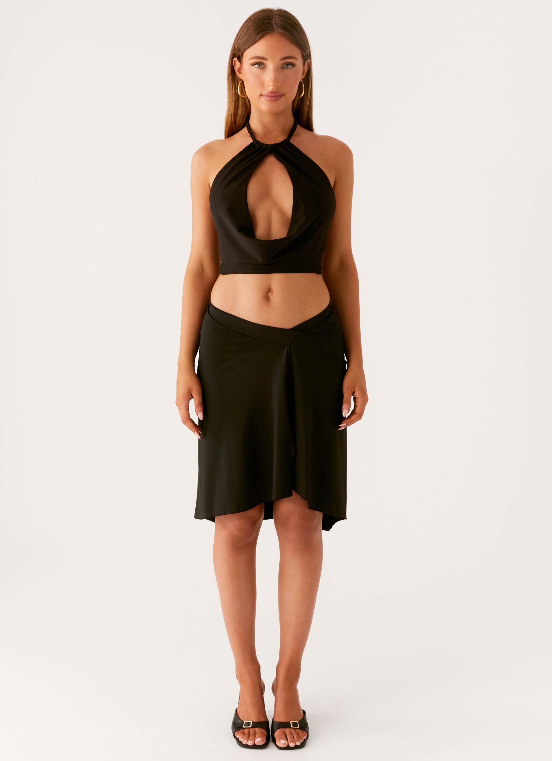 Peppermayo ExclusiveThe Calisa Cowl Top is made for nights that shine. Featuring a front cut-out with braided neck tie strap and open back with back tie, this self-lined stretch jersey top offers a flattering fit with a soft cowl neckline.- Front cut-out- Braided neck tie strap- Stretch jersey- Self-lined- Open back with back tie- Fabric: 94% Polyester, 6% SpandexSize AU 8 / US 4 garment measurements:Bust panel width: 17 cm / 6.69 inFront hem: 28 cm / 11.02 inLength: 36 cm / 14.17 in Tyniesha is 173cm and wears size AU 6 / size US 2