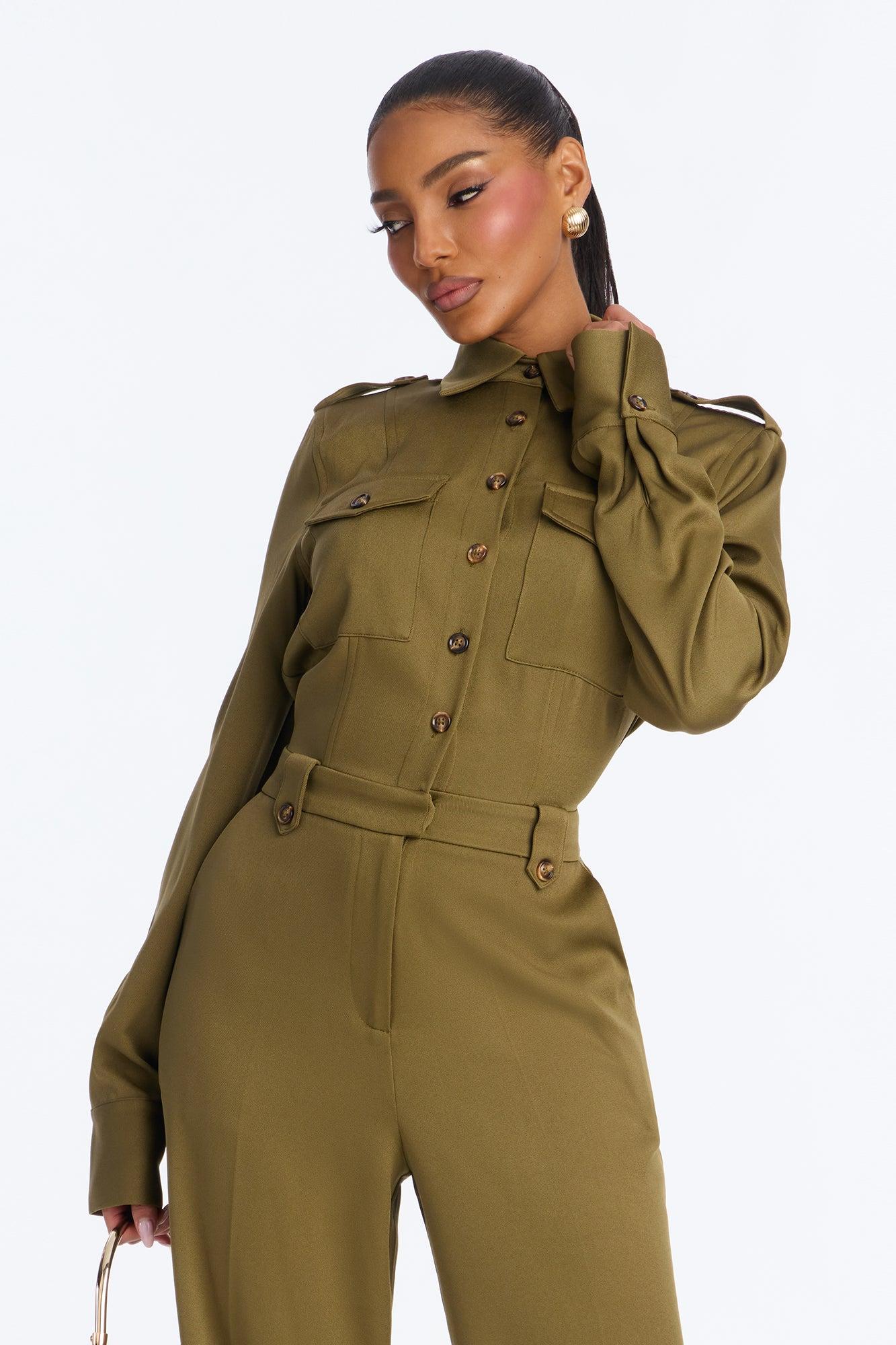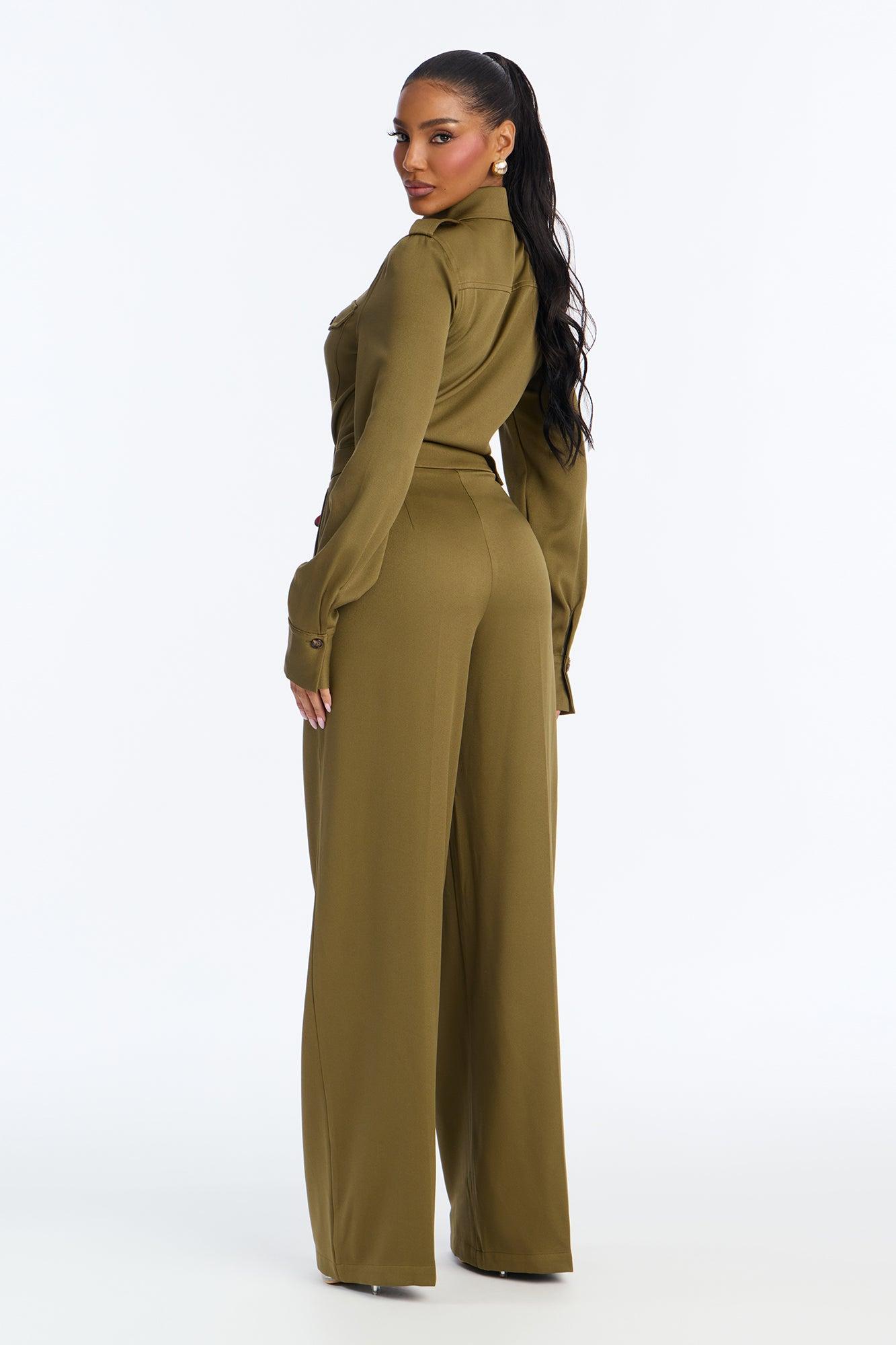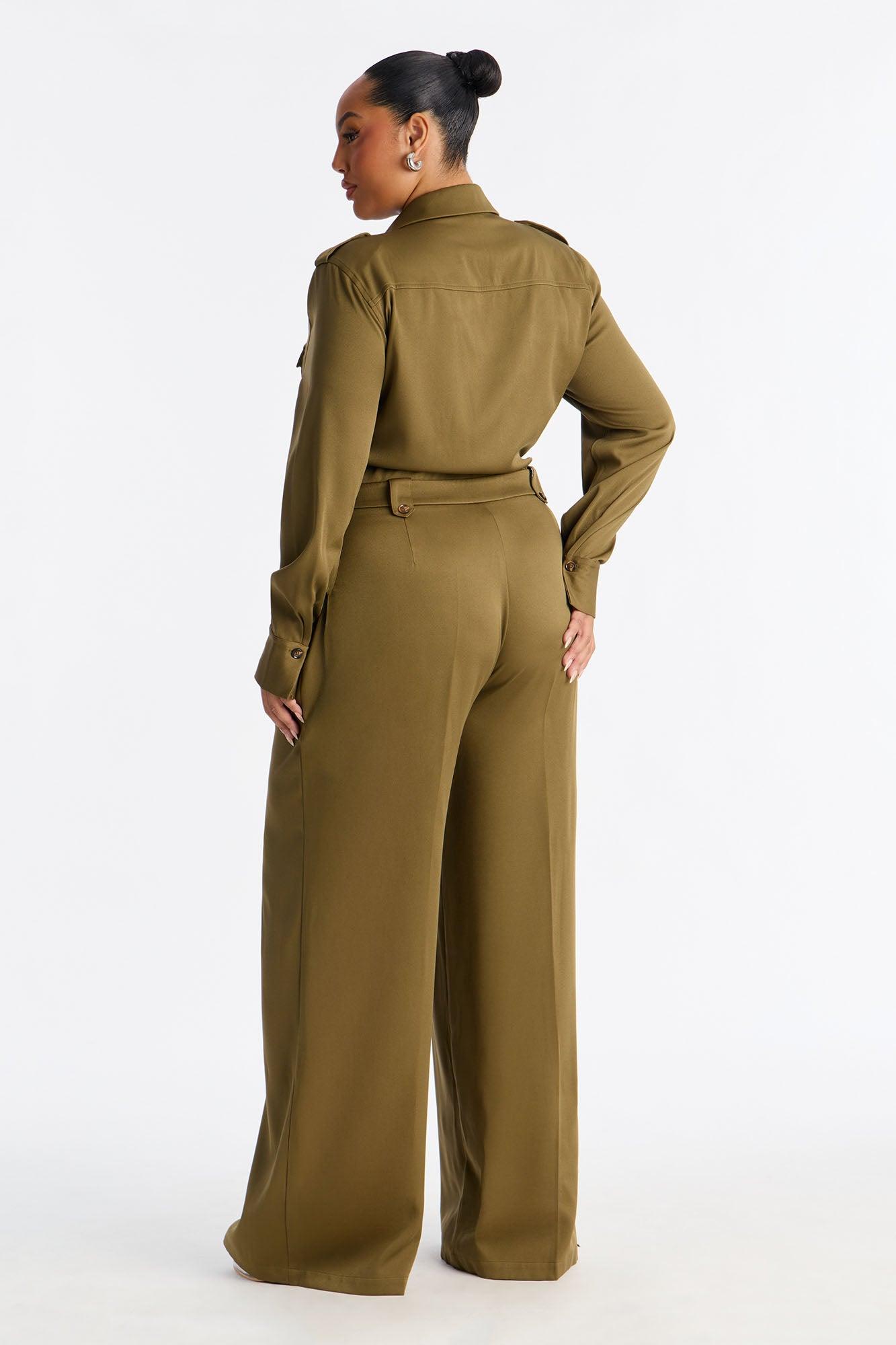 Callie Utility Long Sleeve Wide Leg Jumpsuit - Olive Female