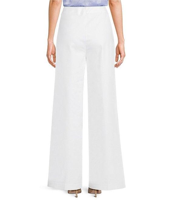 From Calvin Klein, these pants features: Cotton blend fabrication Wide leg silhouette Two front functional pockets From zip/hook bar closure Approx. 32.5" inseam Cotton/polyester/spandex Dry clean Imported.