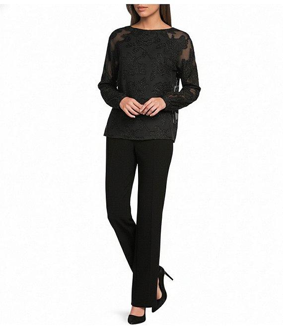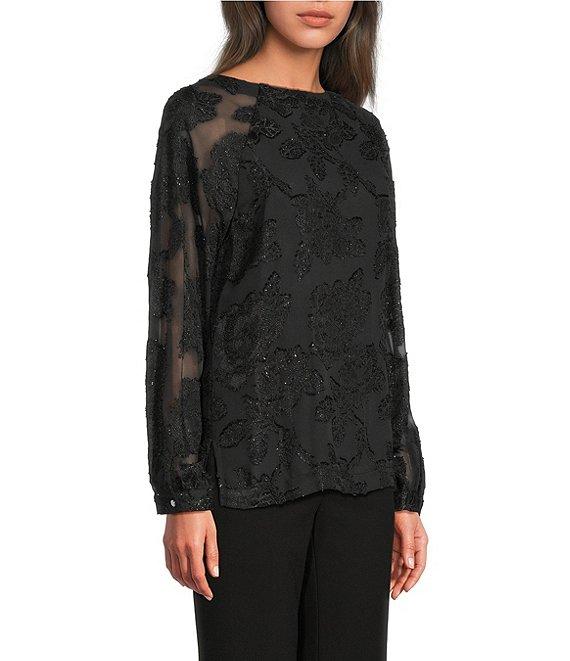 Calvin Klein Floral Burnout Chiffon Crew Neck Raglan Long Sleeve Blouse