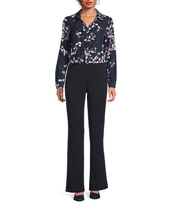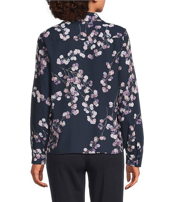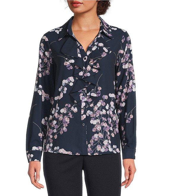 Calvin Klein Printed Georgette Point Collar Long Sleeve Ruffle Button Front Top